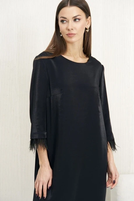 Элегантное платье прекрасно подчеркнёт Ваш стиль и красоту. Лаконичный дизайн и упрямлённый силуэт и круглый вырез горловины – особый шарм данной модели. Платье выполнено из полотна отличного качества. Главная изюминка данной модели – лента из натуральных страусиных перьев по рукавам, которую при желании легко можно отстегнуть. Длина рукава ок. 50 см. Длина платья по спинке ок.94 см.