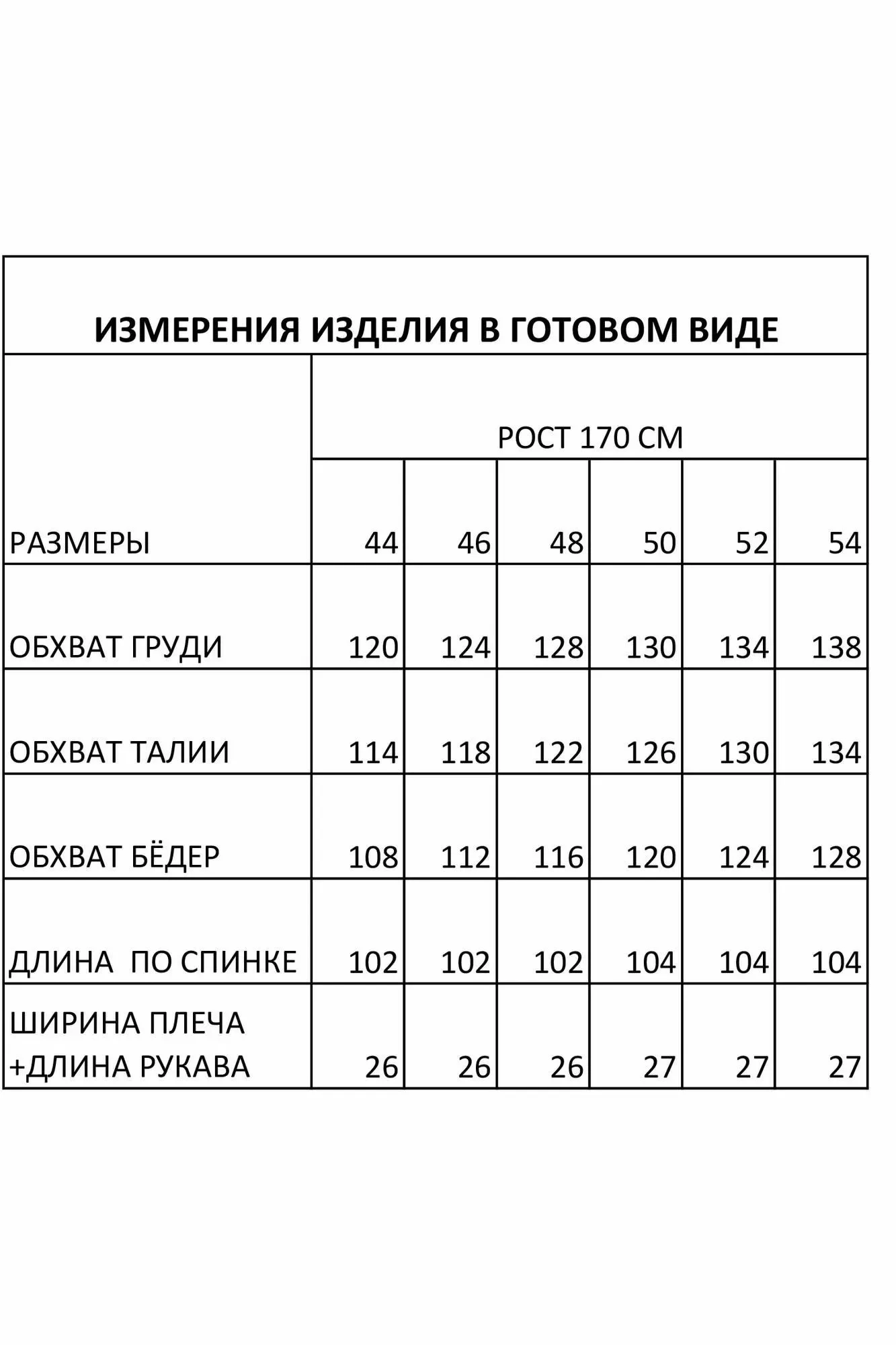 Таблица размеров