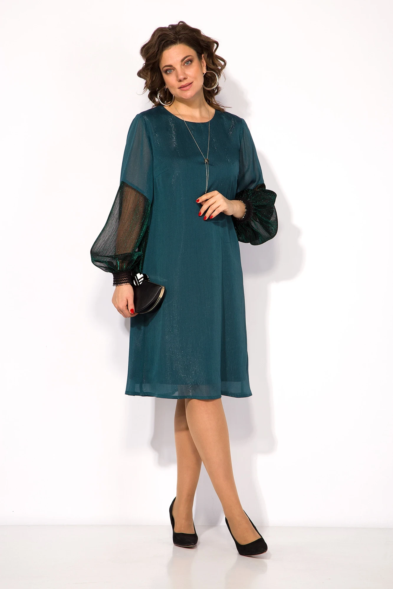 Элегантное, нарядное платье, трапециевидного силуэта в глубоком зеленом оттенке морской волны. Платье трапециевидного силуэта от линии груди. Вырез горловины округлый. Эффектный пышный рукав украшает вставка из сетки с кружевом. Рукав по низу присборен на декоративную резинку. Изюминкой данной модели служит эффектный вырез по спинке, переходящий в бант-завязку! Платье на стрейчевой трикотажной подкладке. Платье идеально подходит на любой тип фигуры, а дизайнерская вышивка является главным акцентом в данной модели.