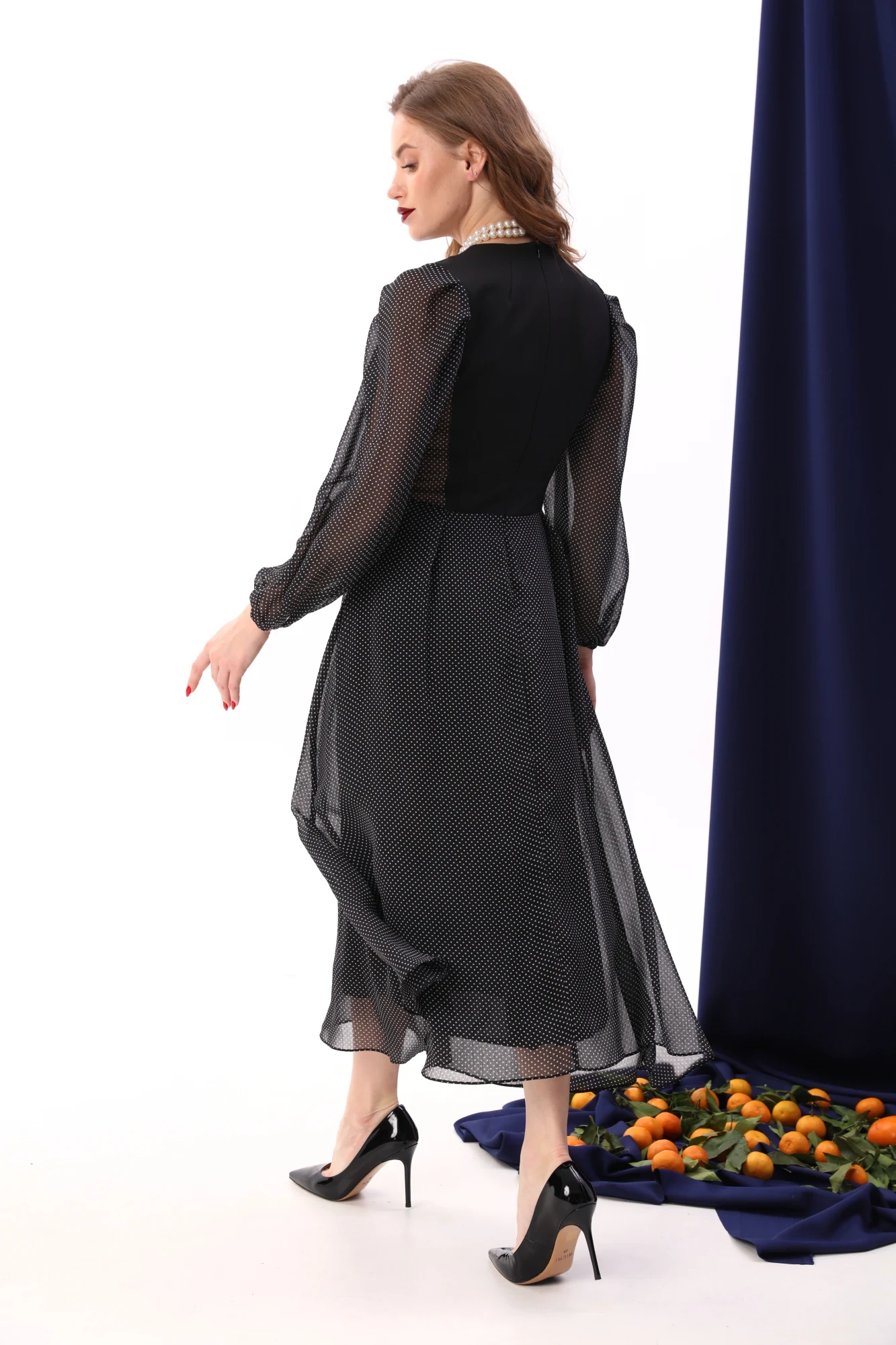 Вечернее платье с шифоном NikVa 416-7 черный/белый горошек