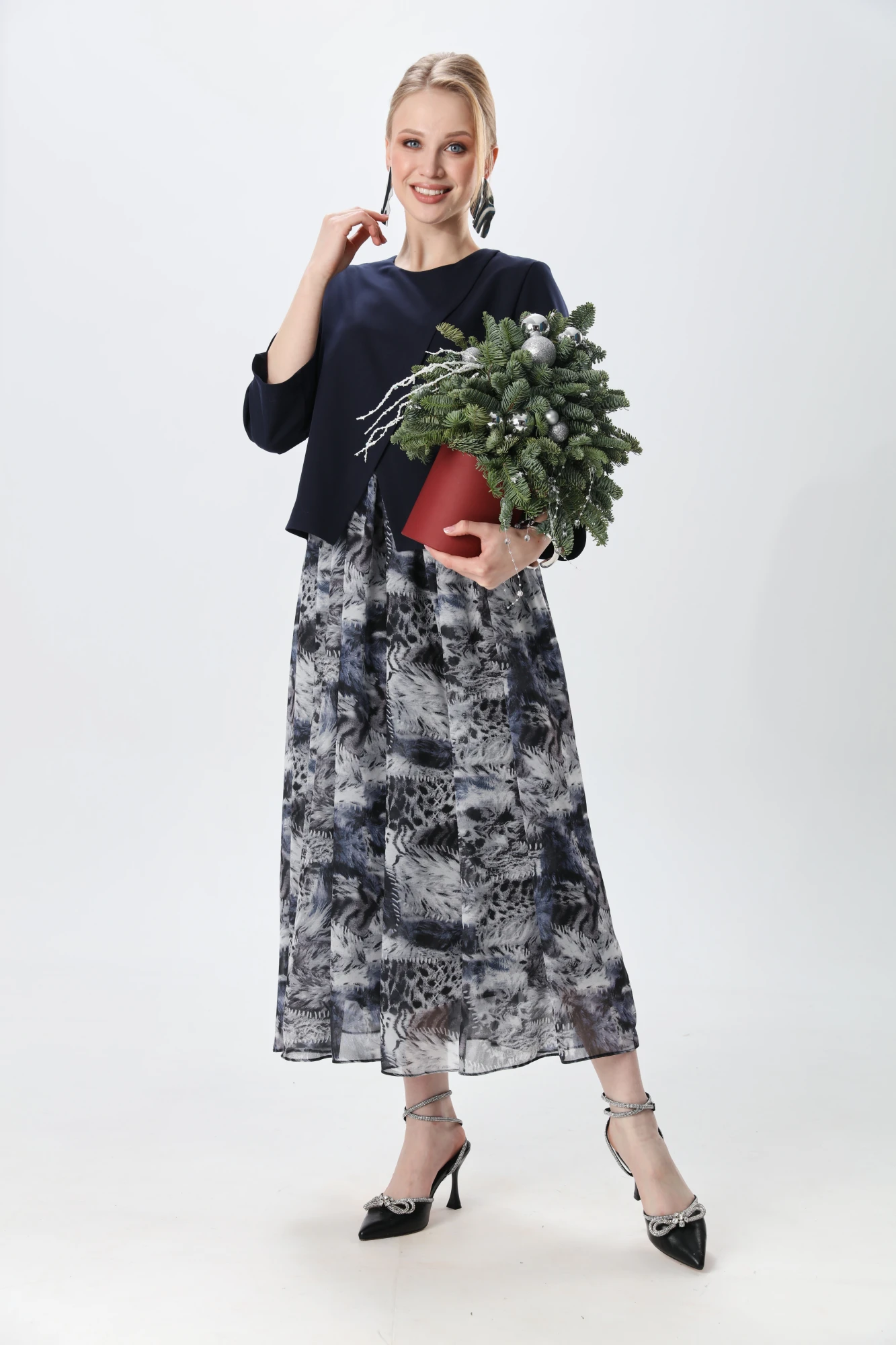 Платье NikVa н1007-2 индиго и серая абстракция