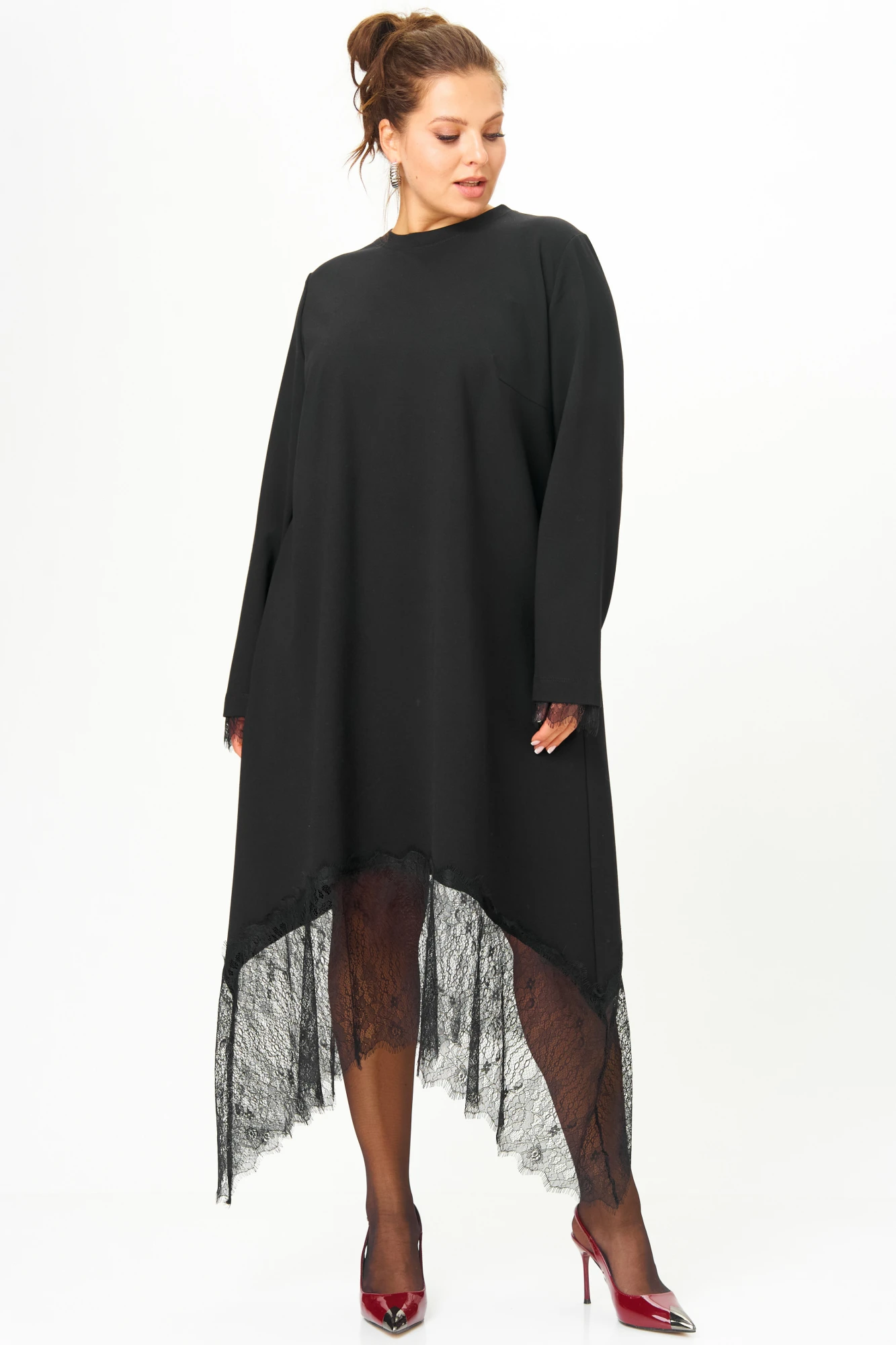 Эффектное платье выполнено из трикотажного полотна. Платье свободного трапециевидного силуэта, длиной макси. Рукав втачной длинный с манжеткой из кружева. В боковых швах имеются функциональные карманы. Низ платья оформлен кружевным воланом. Длинный фасон дает возможность создания стильного образа. Если немножко пофантазировать с обувью получится много стильных и интересных вариантов образа.