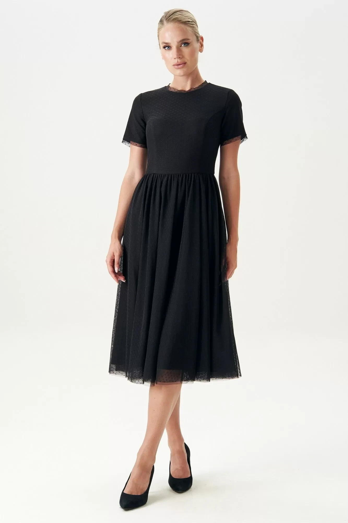 Длина платья по среднему шву спинки – 118,0 см (±2,0 см), Длина платья по среднему шву спинки (до линии талии) – 38,5 см (±2,0 см), Ширина на уровне глубины проймы – 54,0 см (±1,0 см), Ширина на уровне линии талии – 47,5 см (±1,0 см), Ширина на уровне линии бедра – 72,0 см (±1,0 см), Длина рукава – 19,0 см (±1,0 см), Ширина рукава внизу – 20,0 см (±1,0 см), Длина плеча платья – 10,2 см (±0,5 см).