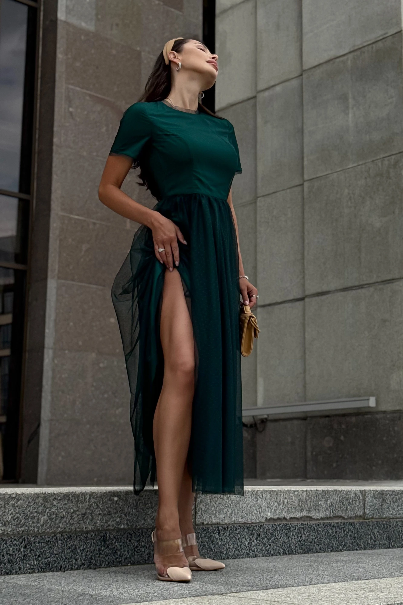 Длина платья по среднему шву спинки (нижнее платье из основной ткани) - 126,0 см (±3,0 см), Длина лифа по среднему шву спинки - 37,5 см (±0,5 см), Ширина спинки - 35,5 см (±0,5 см), Ширина на уровне глубины проймы - 49,0 см (±1,0 см), Ширина на уровне линии талии - 40,5 см (±1,0 см), Длина рукава - 19,5 см (±1,0 см), Ширина рукава - 18,0 см (±1,0 см), Длина плеча - 9,5 см (±0,5 см).