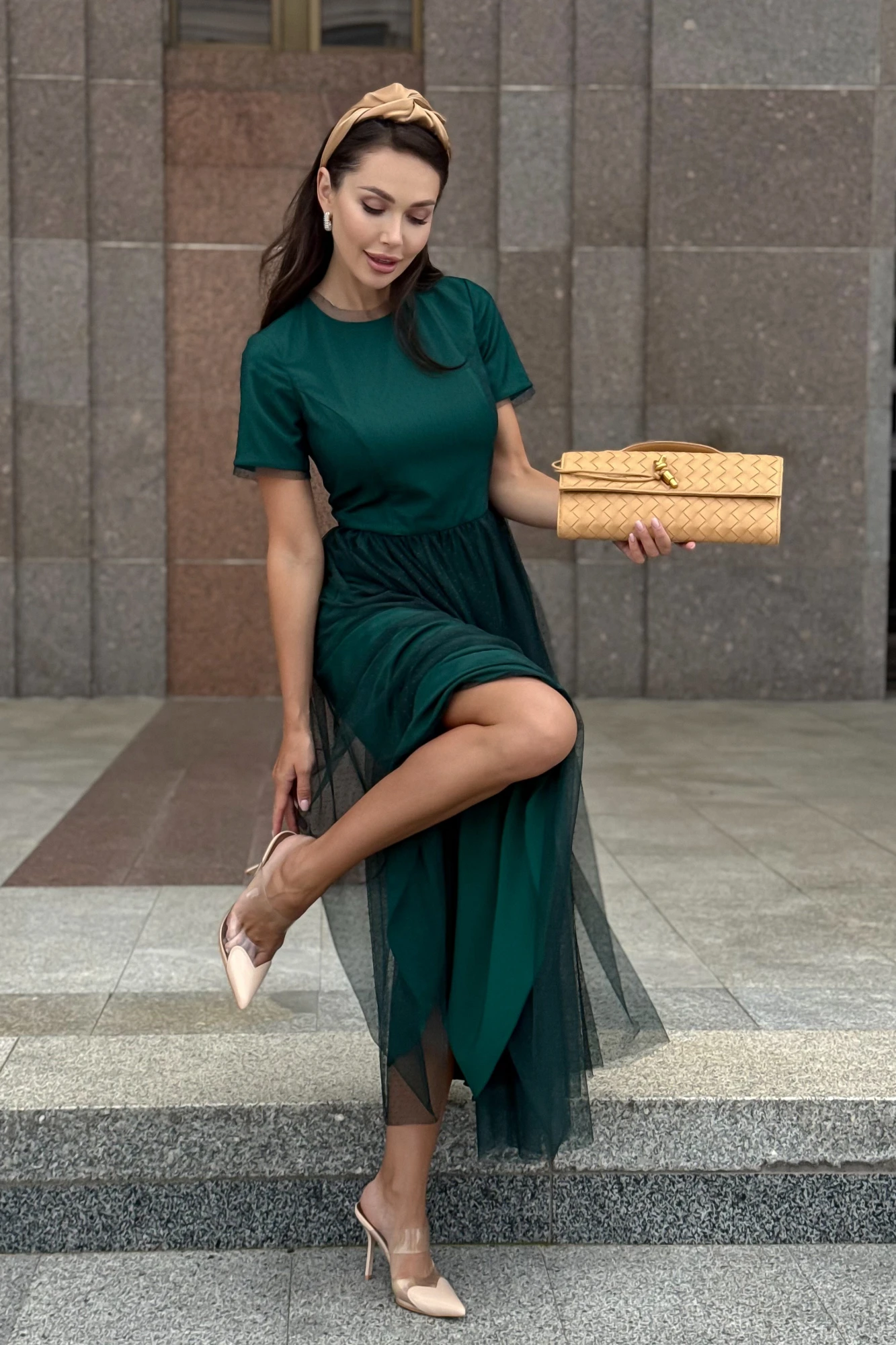 Длина платья по среднему шву спинки (нижнее платье из основной ткани) - 126,0 см (±3,0 см), Длина лифа по среднему шву спинки - 38,0 см (±0,5 см), Ширина спинки - 38,5 см (±0,5 см), Ширина на уровне глубины проймы - 53,0 см (±1,0 см), Ширина на уровне линии талии - 45,5 см (±1,0 см), Длина рукава - 19,5 см (±1,0 см), Ширина рукава - 19,0 см (±1,0 см), Длина плеча - 10,0 см (±0,5 см).
