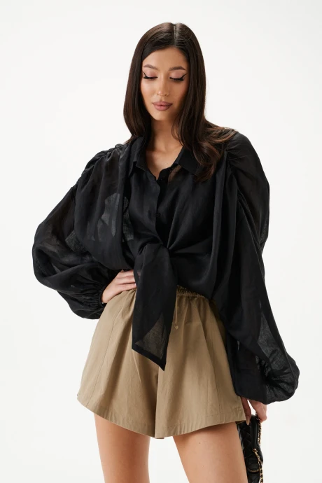 Шорты свободного кроя. Выполнены из хлопкового полотна. А-силуэт. Пояс на резинке с кулиской. Карманы-хулиганы. По передней и задней части вертикальные швы. Длина 37 см