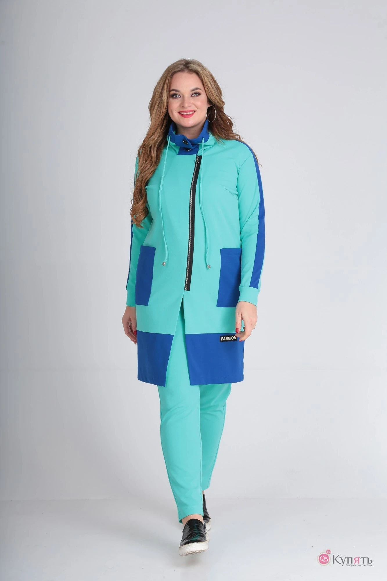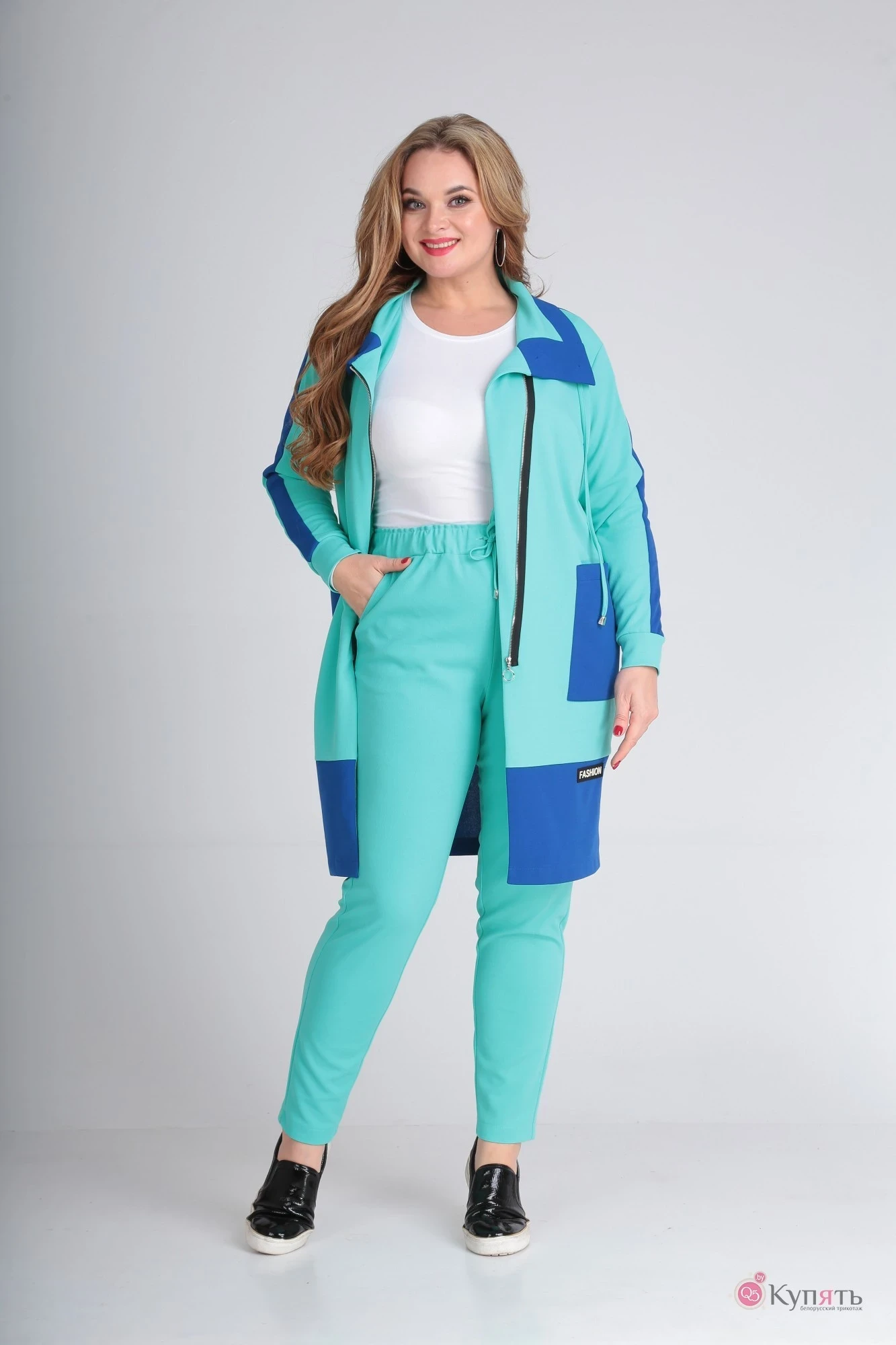 Замечательный костюм из трикотажа средней плотности. Брюки на резинке , очень удобные. Можно носить как спортивный костюм и как стиль кэжуал. Цвет яркий, особенно с яркими кроссовками смотрится очень свежо, у нас в городе в продаже нет такого плана костюмов! Отличная идея, спасибо производителю!!!