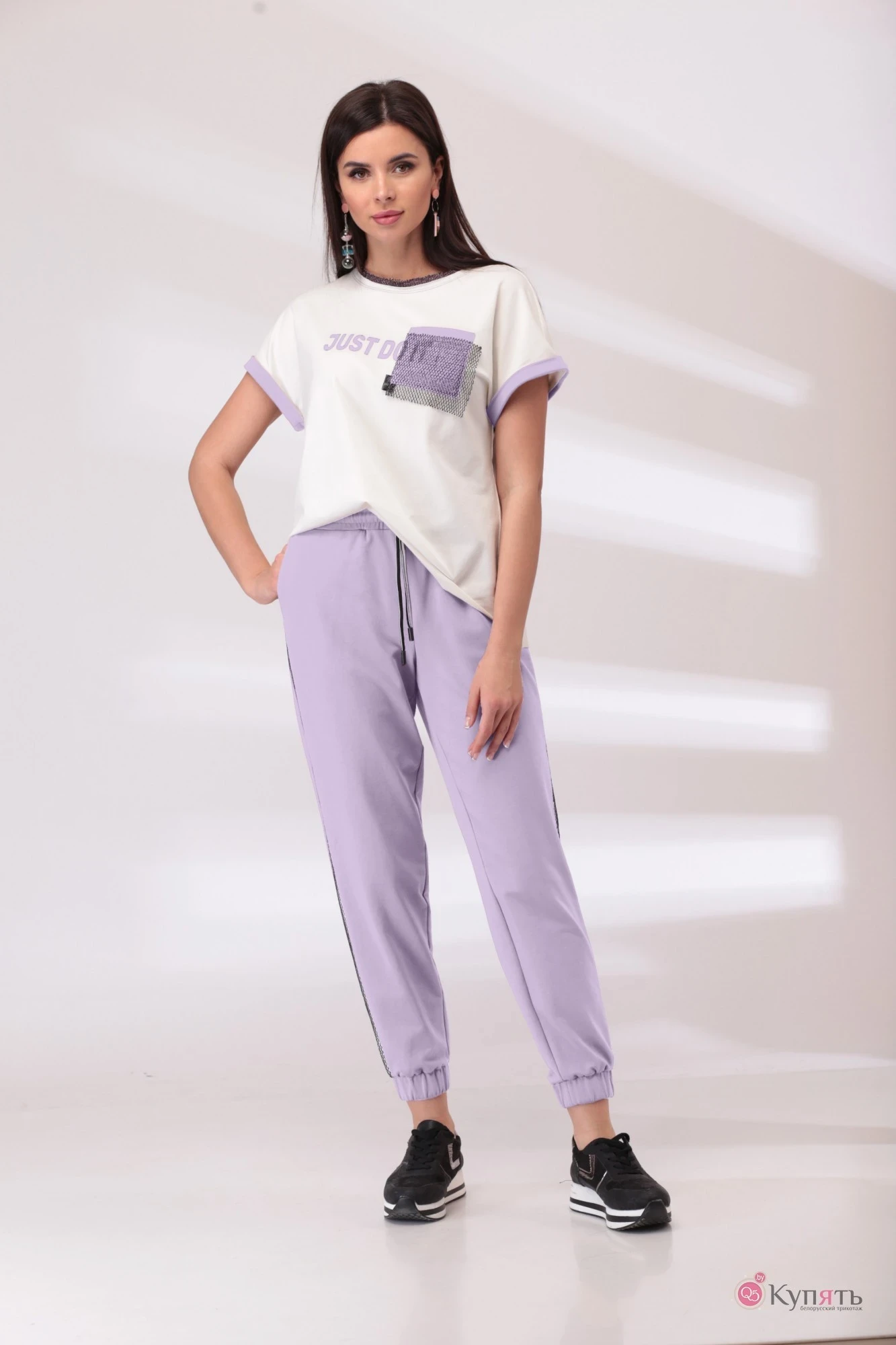 майка: 86% вискоза,10% ПЭ, 4% спандекс; брюки: 96% Хлопок, 4% эластан