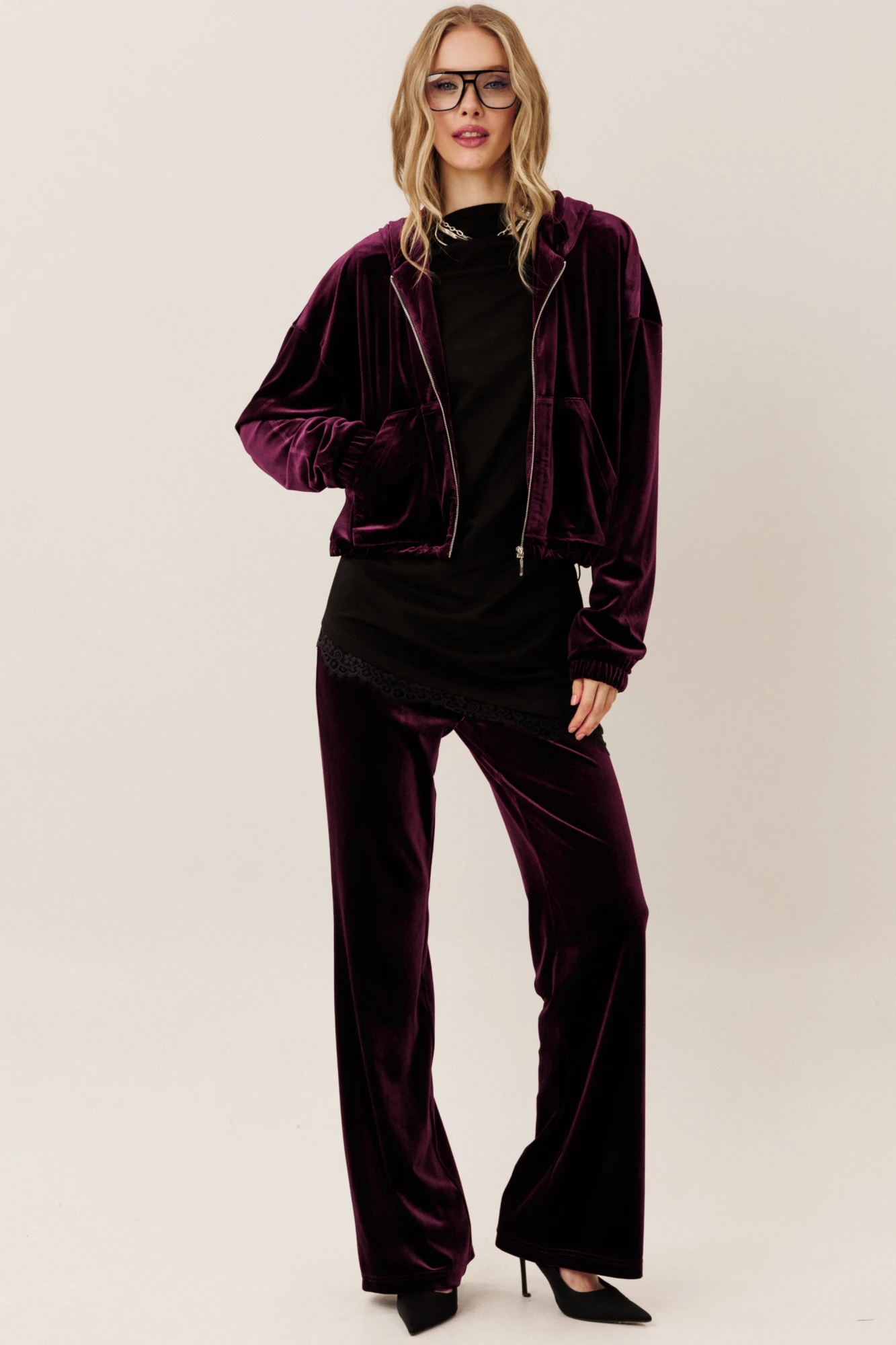 "Самый тренд этого сезона в коллекции от GO - шикарный велюровый костюм! Худи на молнии вместе с брюками клеш - лучшее решение для Вас! Будьте стильными вместе с нами!
