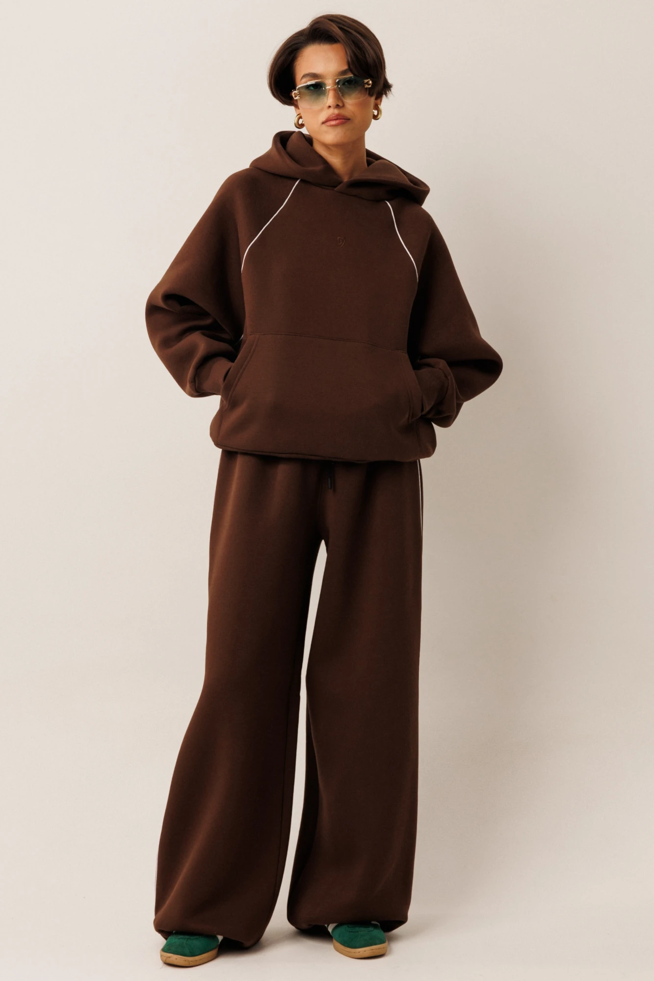 Спортивный теплый костюм от GOwear для твоей комфортной жизни. Изготовлен из футера с начесом, состоит из оверсайз худи и брюк.
