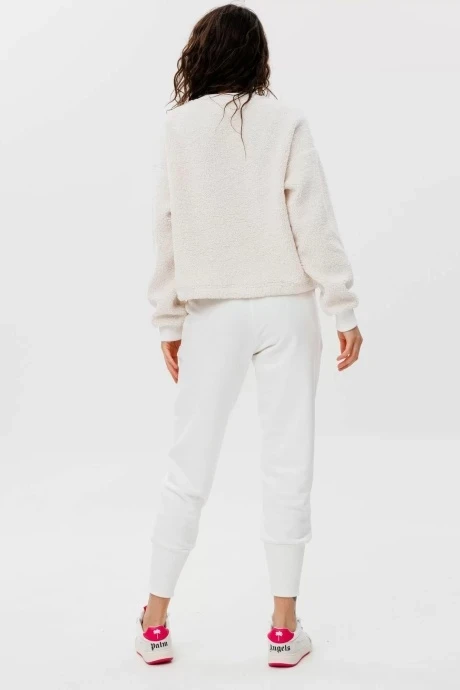 Стильный женский костюм. Свитшот укороченный свободного прилегания с нагрудными карманами, украшенными пуговицами «сердечки». Выполнен из трикотажа «барашек». По низу свитшота вставлен шнурок для дополнительной стяжки. Брюки с боковыми карманами, пояс на резинке, по низу широкие манжеты из кашкорсе. С костюмом можно смело создавать стильные образы как в комплекте, так и по отдельности.