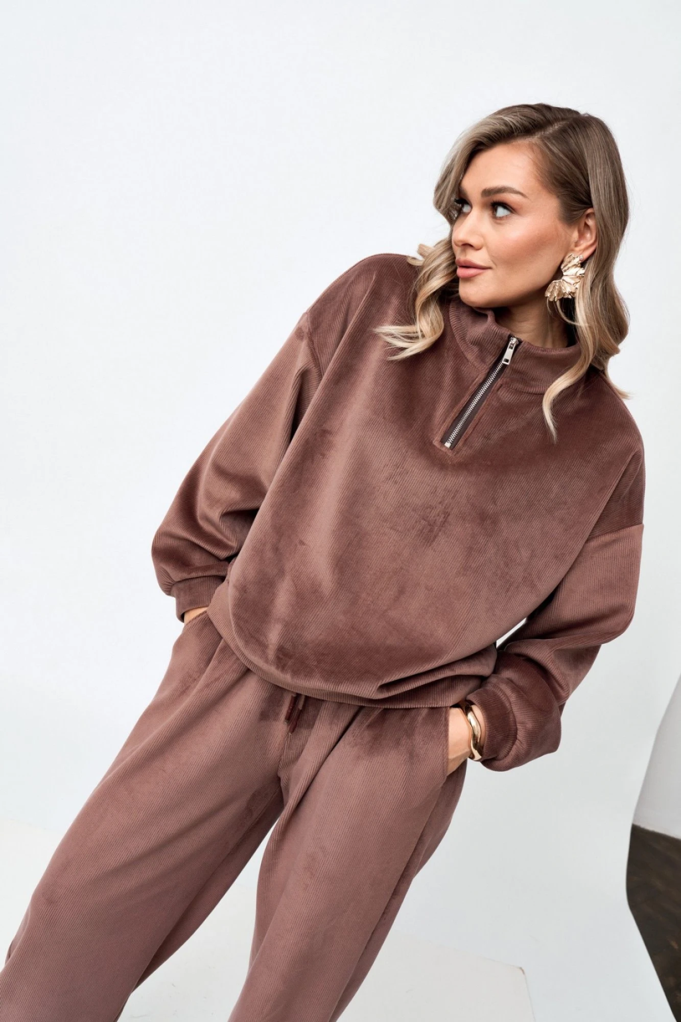 Костюм спортивный женский состоит из джемпера и брюк Костюм выполнен из велюровой ткани в рубчик.