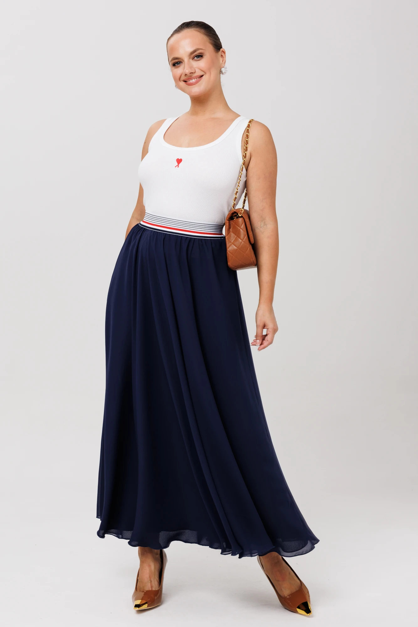 Юбка макси из нашей новой коллекции – это идеальное сочетание стиля и комфорта, созданное специально для тех, кто ценит элегантность и утончённость в повседневной жизни. Эта женская юбка из двойного шифона впечатляет своим дизайном с чуть игривым акцентом на поясе, который придаёт образу особую изюминку. Великолепный фасон-юбка солнце длиной макси, который подчеркнёт вашу женственность и стиль. В этом изделии применены лучшие материалы: мягкий шифон создает воздушность и неповторимый шарм. Фасон универсален, а использование резинки на поясе повышает комфортность носки, позволяя юбке адаптироваться под индивидуальные особенности фигуры. Юбку леко сочетать с различными верхами: топ, блузка, футболка, кружевной жакет, свитер или жакет из тексиля- все это позволит создавать различные образы на разные случаи. Длинна юбки 98см.