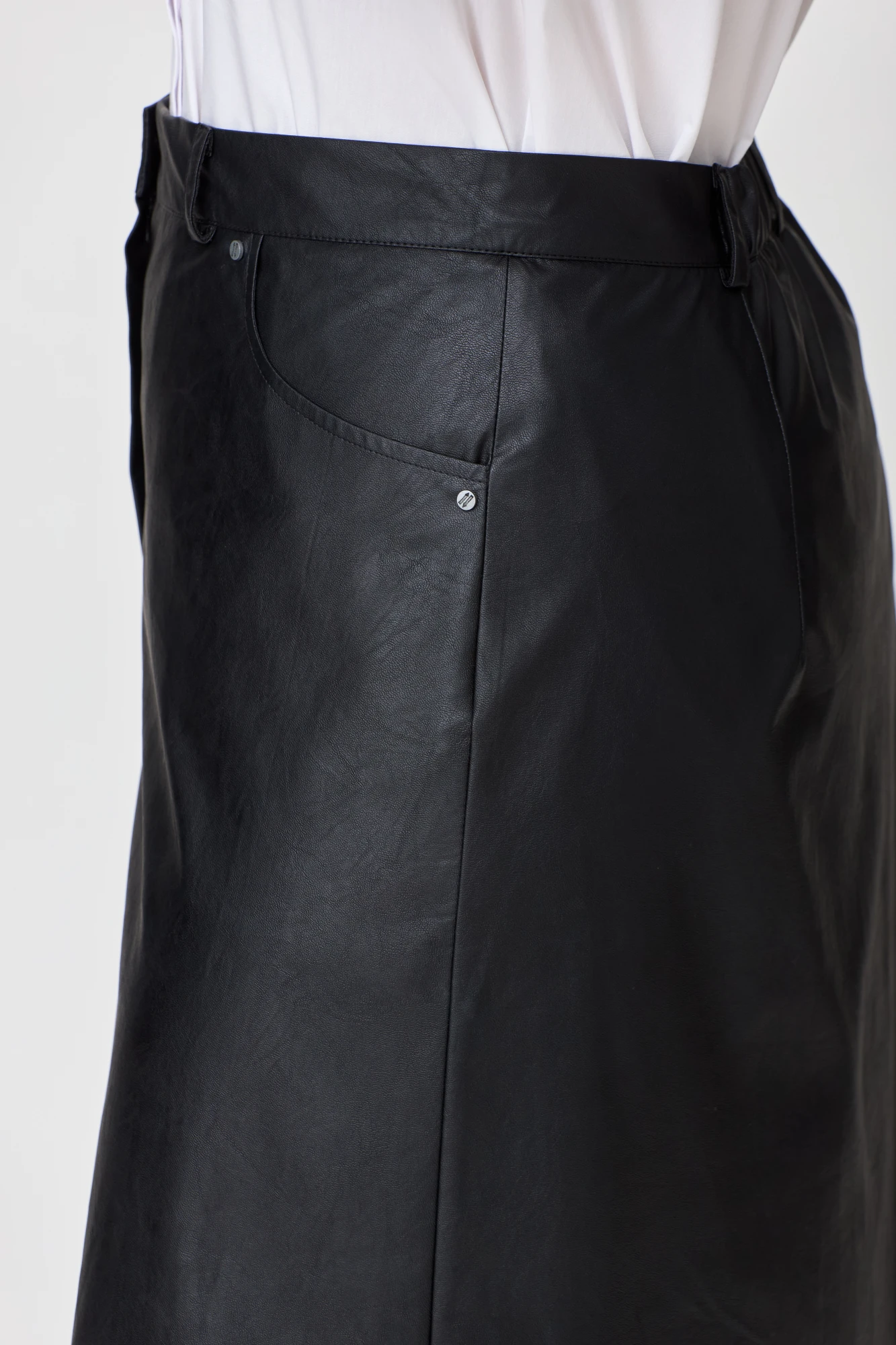 "Юбка А-образного силуэта, длиной ниже колена, выполнена из экокожи. Юбка на подкладке.