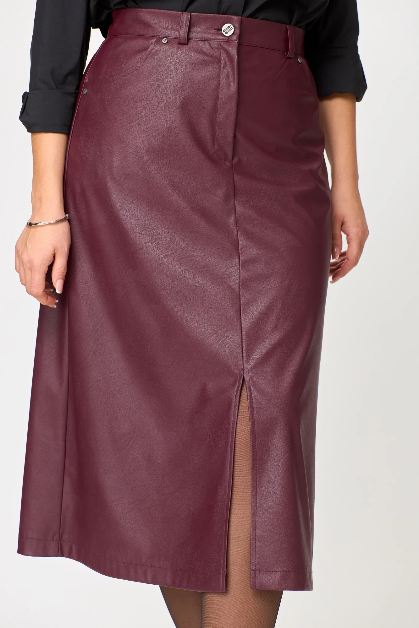 Юбка А-образного силуэта, длиной ниже колена, выполнена из экокожи. Юбка на подкладке.
