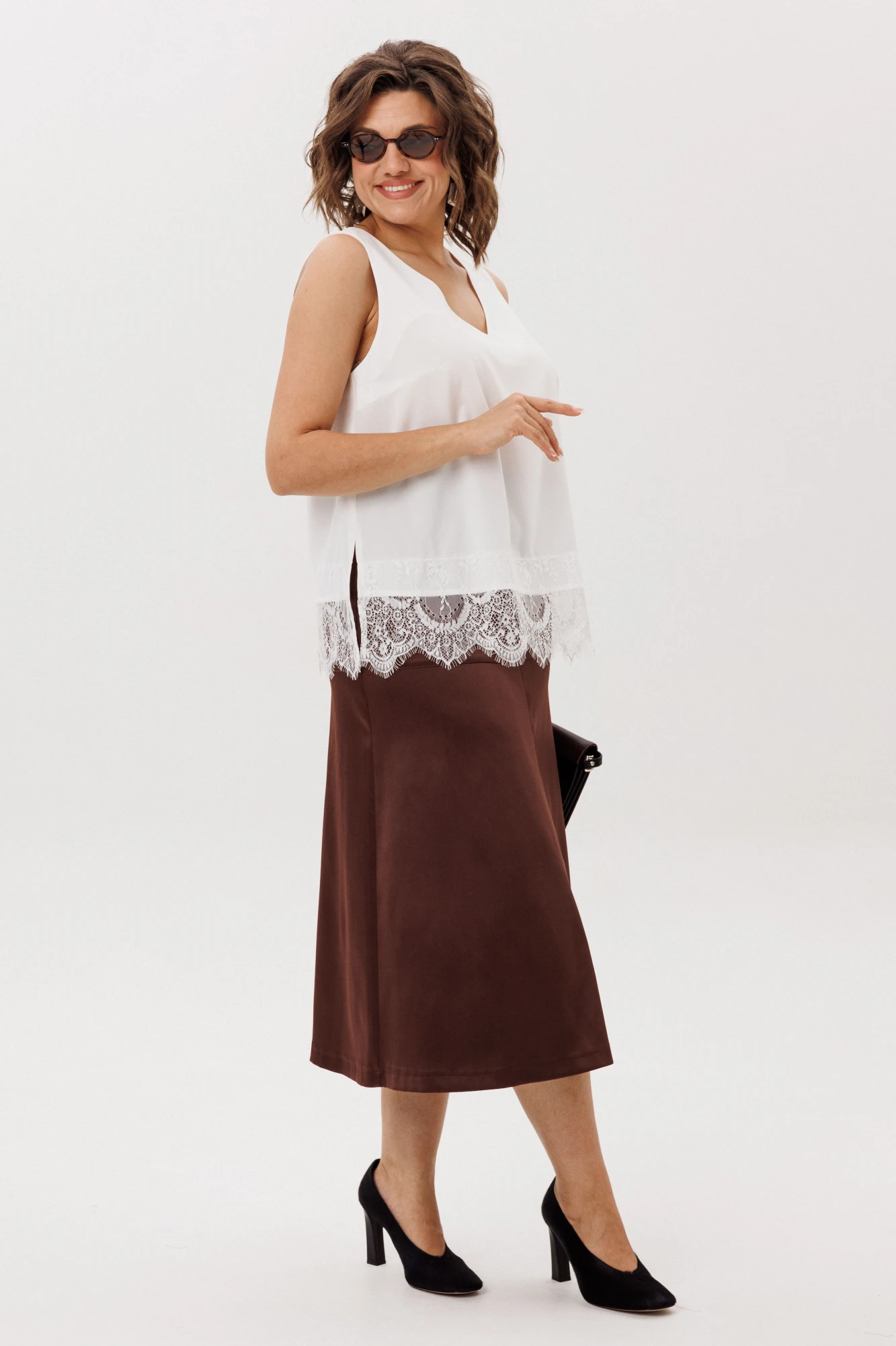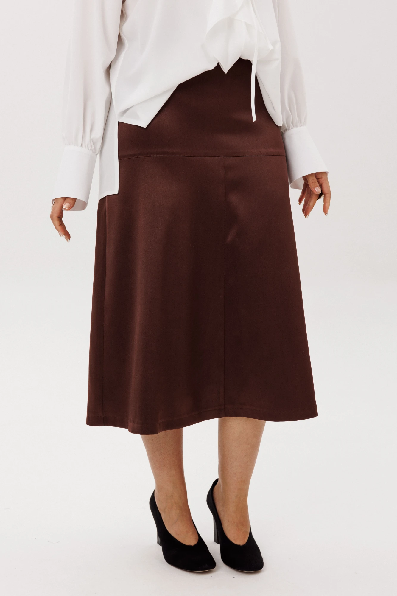 Элегантная кокетка добавляет нотку утонченности, а расклешенный к низу крой создает легкость и воздушность, придавая вашему образу женственность и шарм. Потайная молния в боковом шве обеспечивает аккуратный внешний вид и легкость в надевании.