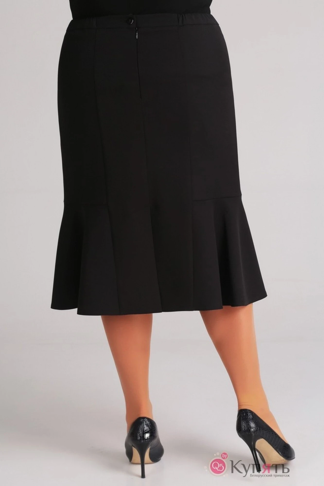 Юбка полуприлегающего силуэта, расширенная к низу из стрейчевой юбочной ткани. По переднему и заднему полотнищу, рельефы из талии до низа. Юбка на поясе с резинками по бокам. , с застёжкой на петлю и пуговицу. Между рельефами задней части юбки и переда подрез, из-под которого расклёшенный волан. Застёжка на тесьму-молнию в центральном шве спинки. Юбка на подкладке. Силуэт: полуприлегающий Вид застежки: застёжка на тесьму-молнию в центральном шве спинки