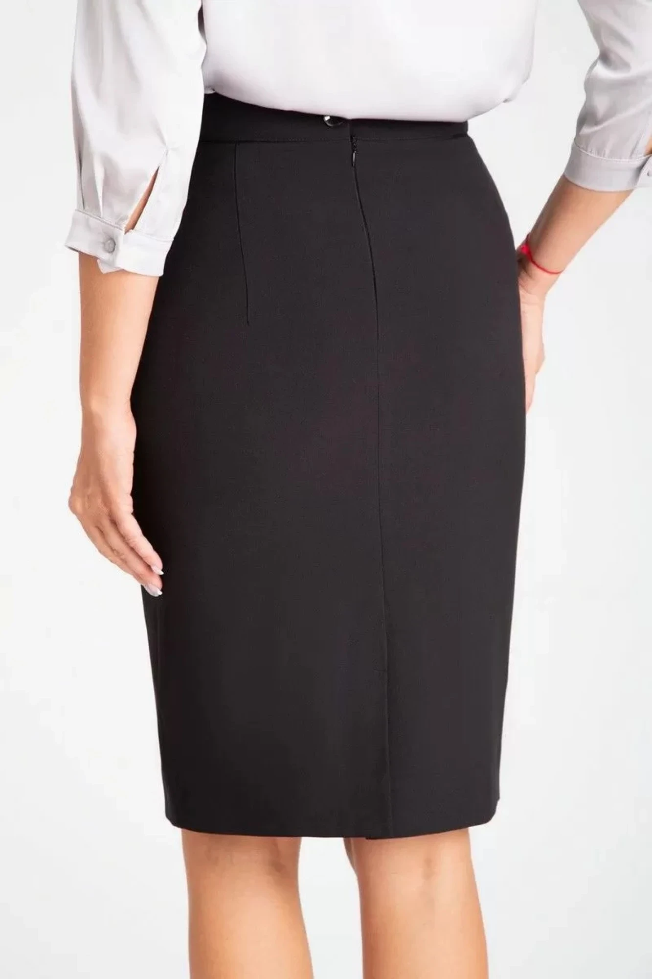Высокая посадка на талии. Притачной пояс. Застежка в среднем шве спинки на потайную молнию и пуговицу на поясе.