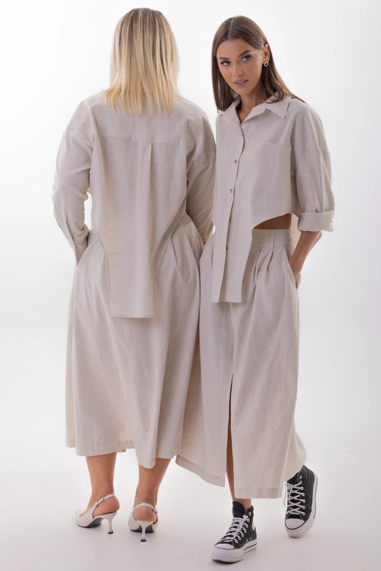 Сшитая из натурального льна, она подарит невероятное ощущение прохлады и комфорта в теплые дни. Мягкая структура ткани с течением времени образует уникальную, индивидуальную усадку, делая вашу юбку по-настоящему единственной в своем роде.