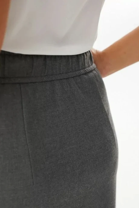 Повседневная юбка прямого силуэта слегка зауженная книзу. Спереди - фигурная планка с застежкой на пуговицы. Пояс прямой, сзади резинка.