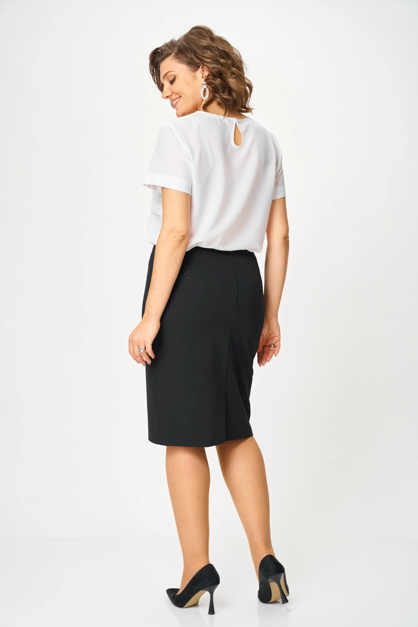 Юбка Sigma карандаш. Изюминка этой юбки - она украшена мелкими стразами по всей длине! Стразы хорошо прикреплены, что позволяет спокойно стирать юбку в стиральной машинке. Юбка с тонкой текстильной подкладкой. Притачной пояс, без резинки. Застегивается на потайную молнию. Эффектная.