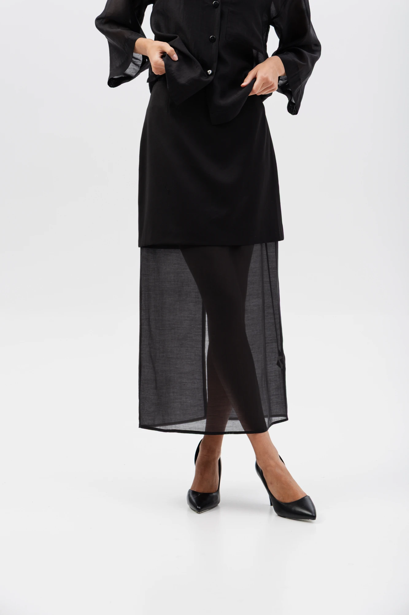Дизайн: верхняя часть юбки выполнена из плотной ткани, а нижняя часть — из лёгкой, полупрозрачной ткани, что добавляет образу лёгкость и интригу;