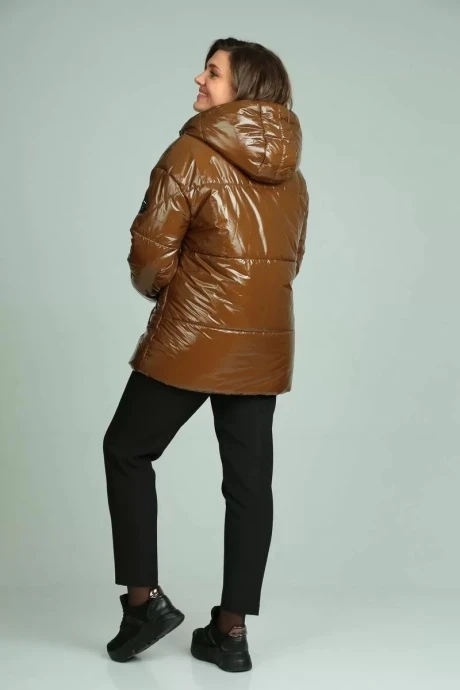 Куртка женская с центральной застёжкой на тесьму-молнию. Линия плеча спущенная, рукав втачной, одношовный, с притачной манжетой(довяз). По переду карманы с листочкой. Капюшон с центральной частью. По низу изделия потайная кулиса на резинку с фиксаторами; по отлёту капюшона кулиса с резинкой с фиксаторами. В качестве отделки используется фурнитура и отделочная строчка, отделочные детали.