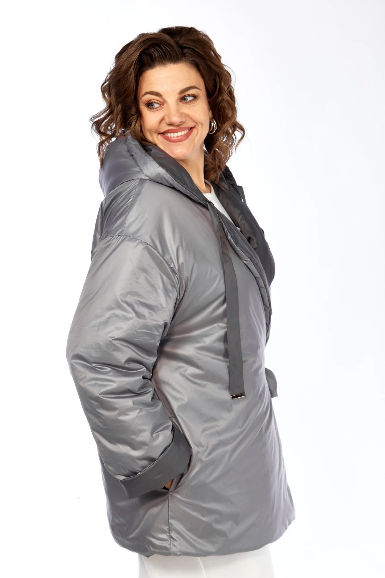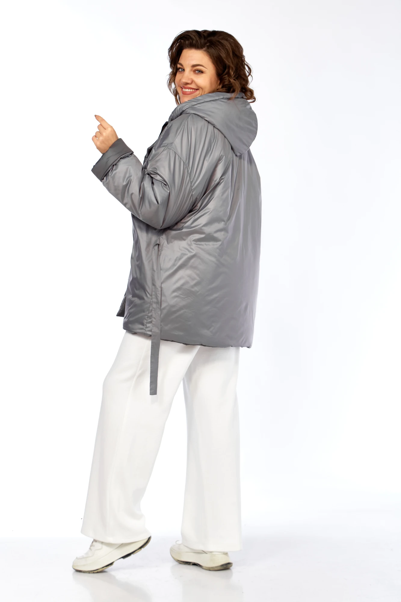Куртка женская двухсторонняя с центральной бортовой застежкой на кнопки. Спинка простая. Перед с боковыми карманами с одной стороны "с листочкой", а внутренняя сторона с карманами в боковых швах. Рукав втачной одношовный со спущенной линией плеча. Воротник-капюшон с кулисой. Есть пояс на резинке с застежкой на пряжку. Куртка утепленная. Температурный режим до - 10 градусов. Фурнитура может отличаться от заявленной на фото.
