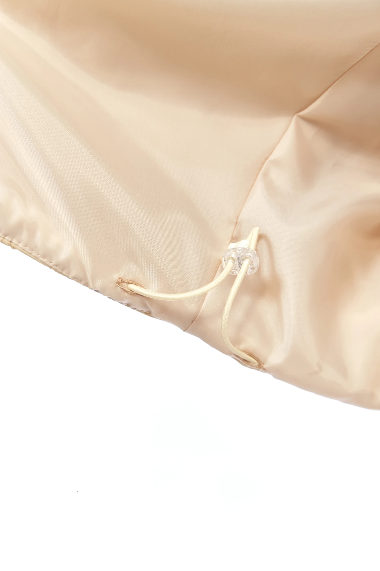 Куртка женская, О-образного силуэта с центральной застежкой на молнию. Спинка простая. Перед с боковыми карманами "с листочкой". Рукав-реглан . Воротник-капюшон. По низу куртки в подкладке обработана кулиса со шнуром и регулятором. Куртка на утеплителе. Температурный режим до -5 градусов.