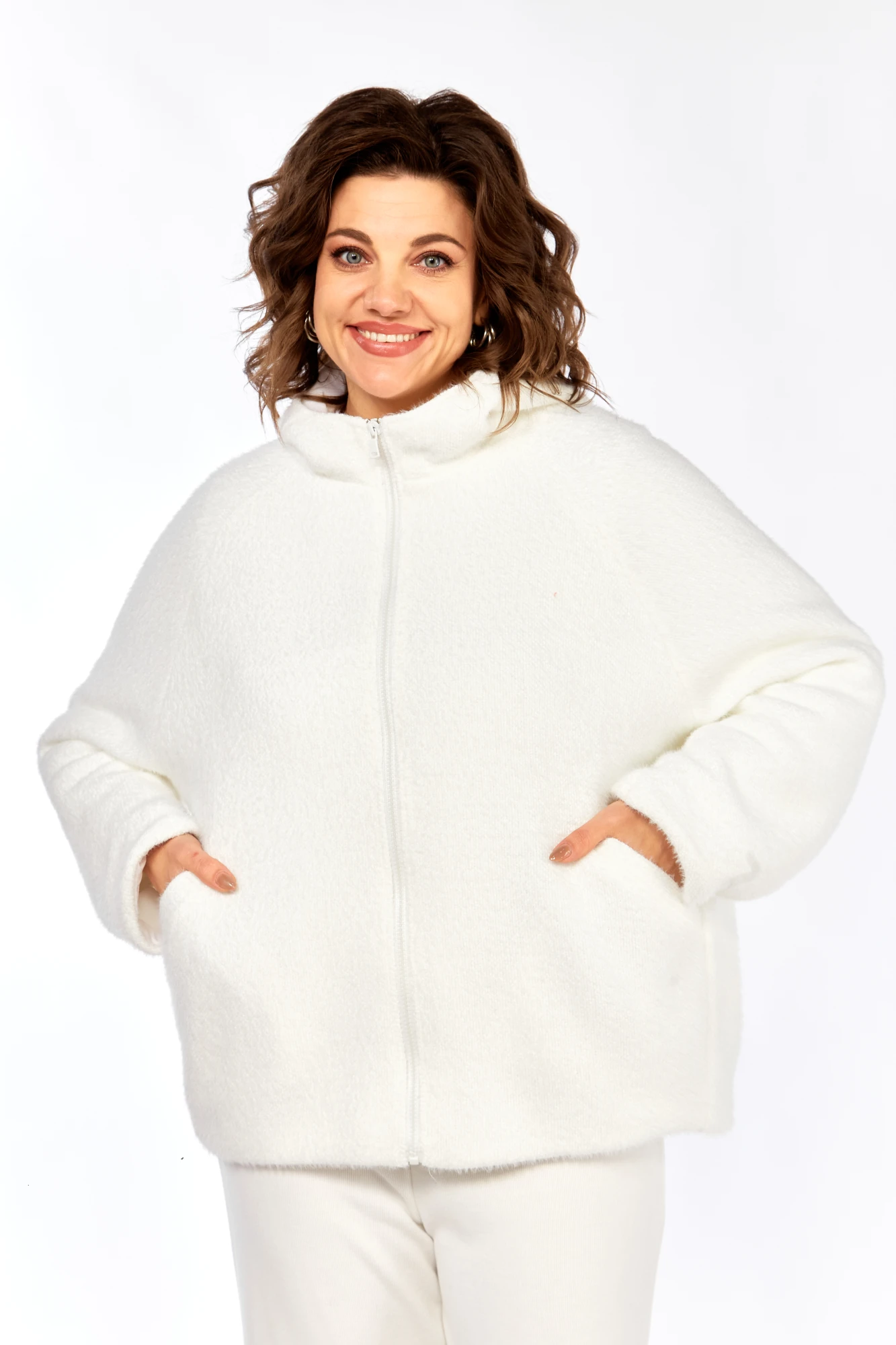 Куртка женская, О-образного силуэта с центральной застежкой на молнию. Спинка простая. Перед с боковыми карманами "с листочкой". Рукав-реглан . Воротник-капюшон. По низу куртки в подкладке обработана кулиса со шнуром и регулятором. Температурный режим до 0 градусов.