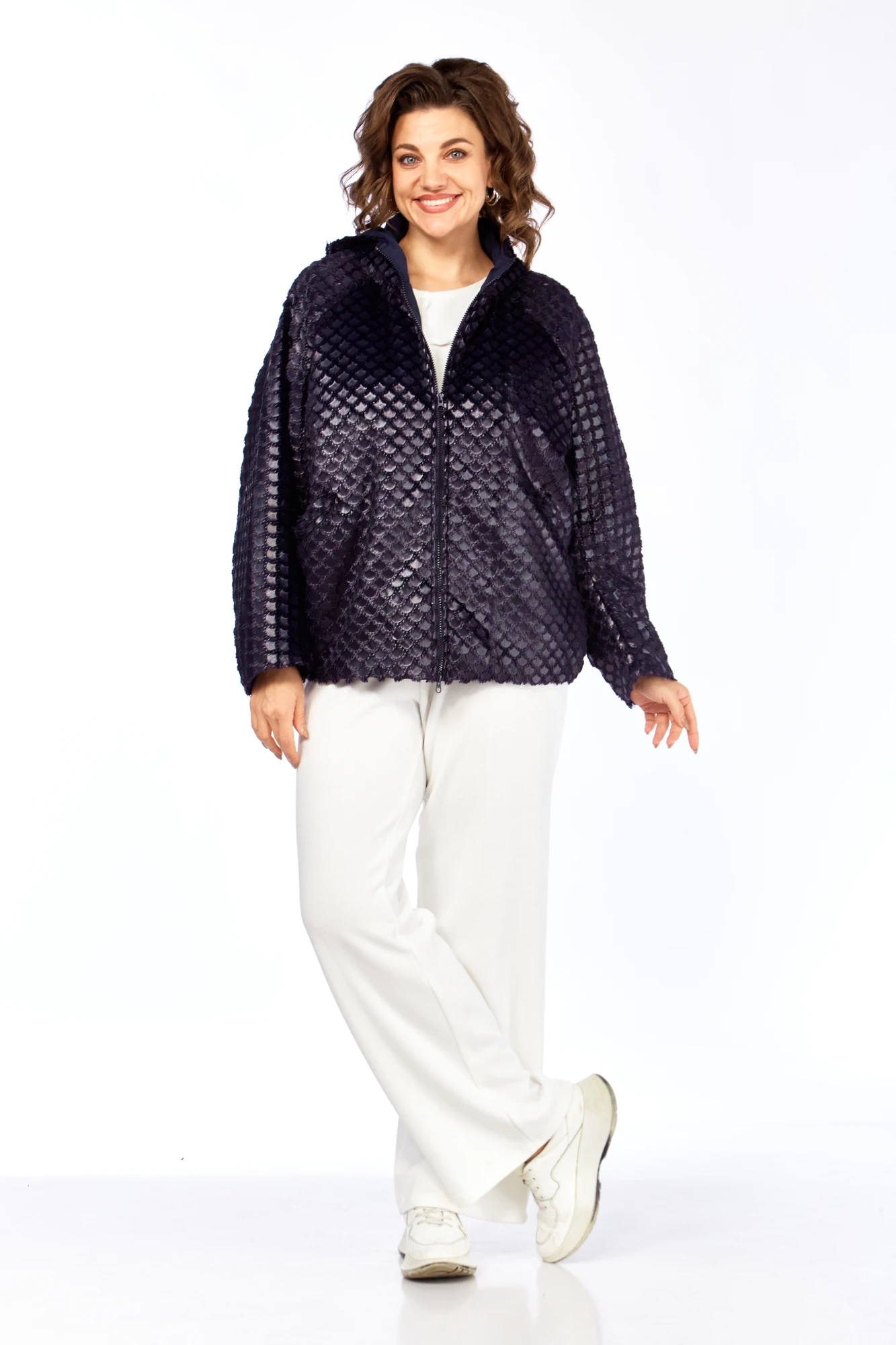 Куртка женская, О-образного силуэта с центральной застежкой на молнию. Спинка простая. Перед с боковыми карманами "с листочкой". Рукав-реглан . Воротник-капюшон. По низу куртки в подкладке обработана кулиса со шнуром и регулятором. Температурный режим до 0 градусов.