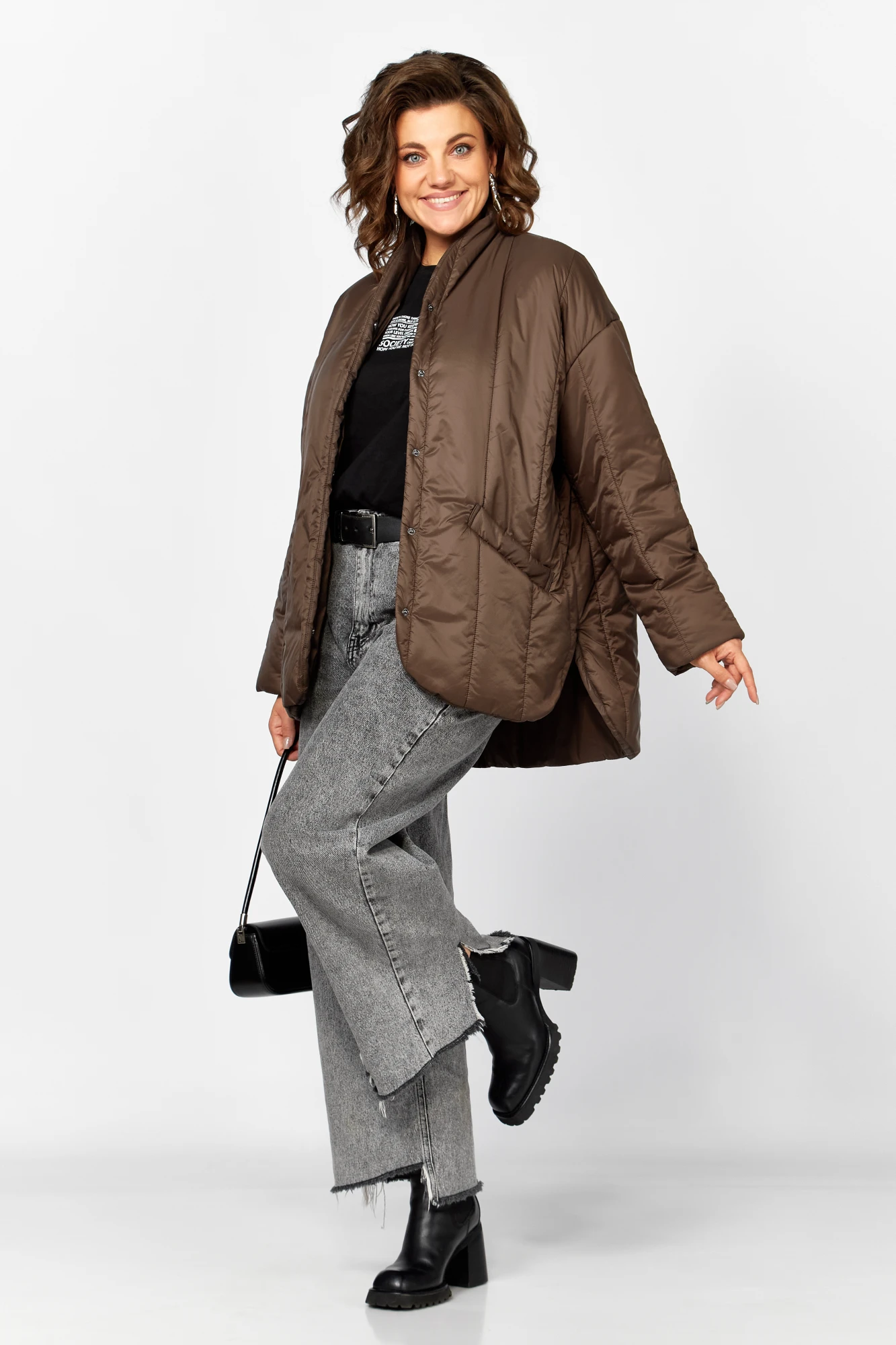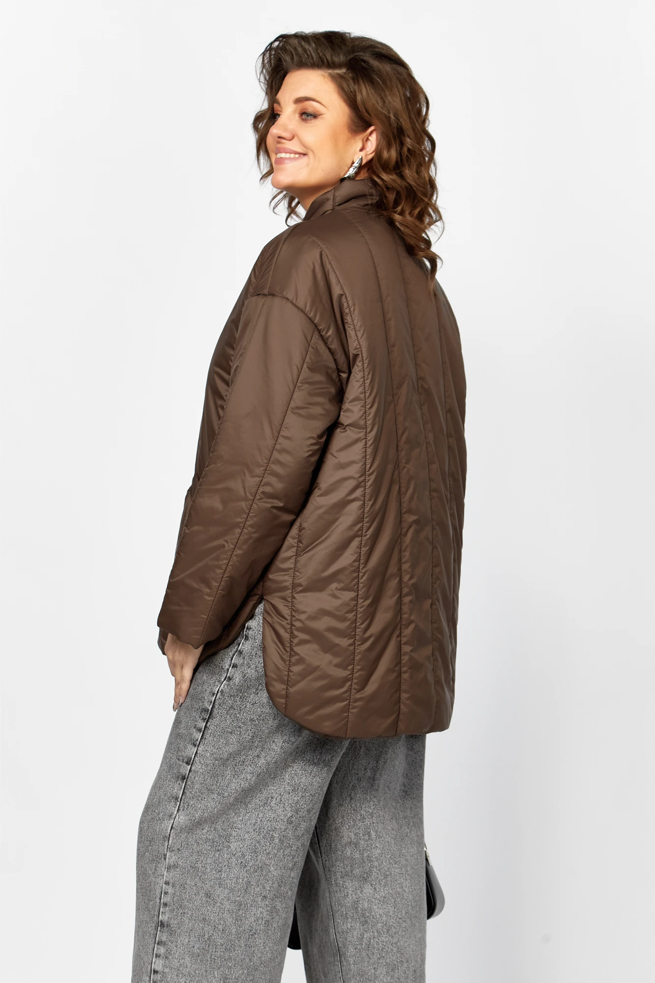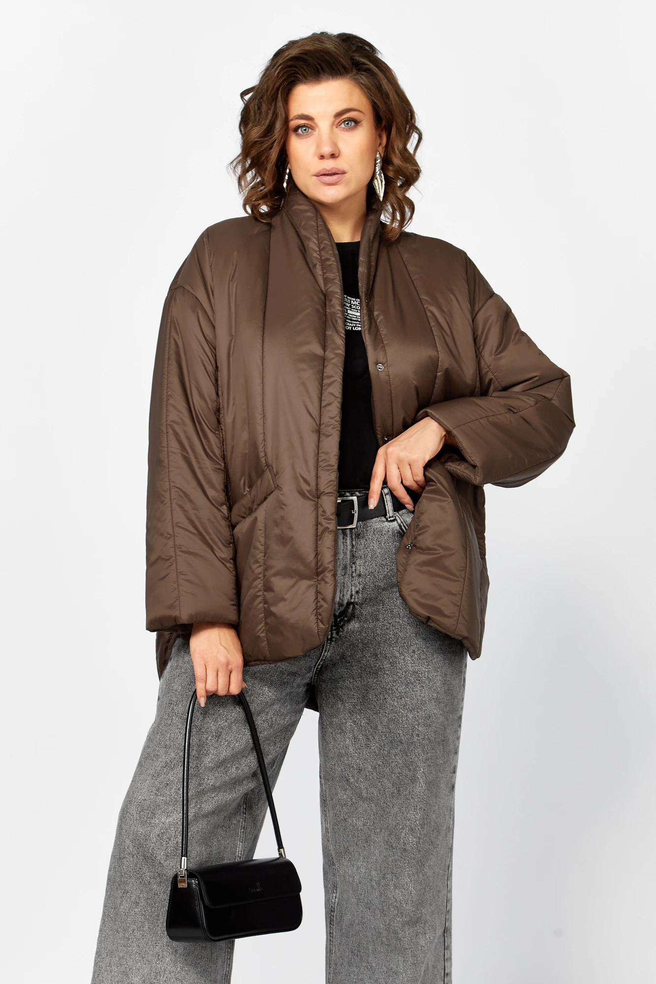 Демисезонная стеганая куртка из лакке ,на утеплителе синтепон 150 гр /и ветрозащитной подкладке барьер в современном минималистично стиле сочетает в себе функциональность и изящество . Прямой свободный силуэт со слегка оверсайз -эффектом разноуровневый низ с мягким закруглением, вертикальная стежка визуально вытягивает фигуру, диоганальные линии карманов создают динамику и оригинальность . Мягкий цельнокроеный воротник стойка защищает шею от ветра , скрытая застежка на кнопки придает изделию лаконичность и универсальность в сочетании как с классическими брюками , так и с джинсами Модель идеально подходит для активного ритма жизни , создавая стильный и современный образ. Температурный режим от +5 до -10 градусов.