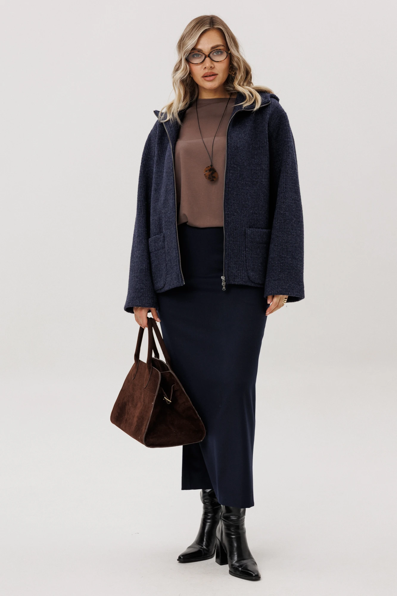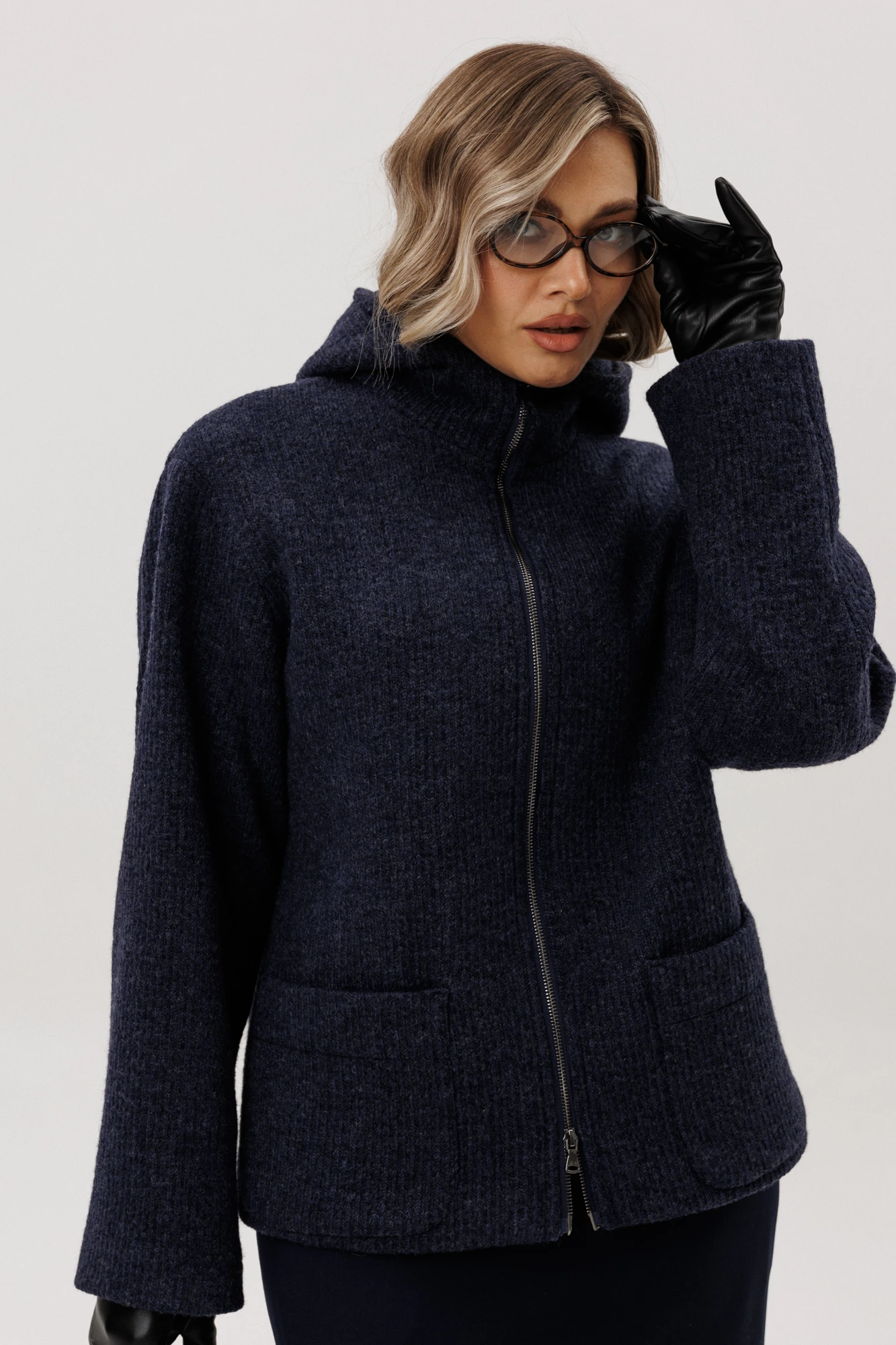 Куртка демисезонная из мягкой, полушерстяной, толстой, уютной ткане на трикотажной основе . Капюшон с высокой цельнокроенной стойкой, застегивающийся до верха. Куртка полностью на подкладке. Длина по спинке 65см..