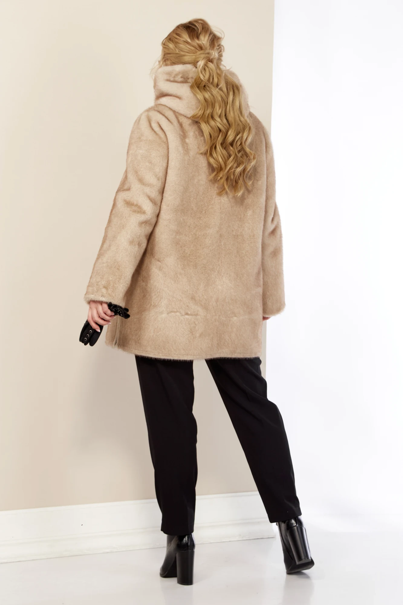 Вторая сторона изделия с прорезными карманами и со смещенной застежкой по косой с планкой на петли и пуговицы. Это отличный выбор для современной молодой девушки или утонченной женщины. Носите удлиненную модель как меховую шубу или эко-дубленку. Создавайте роскошные образы зимой или в холодный демисезонный период.