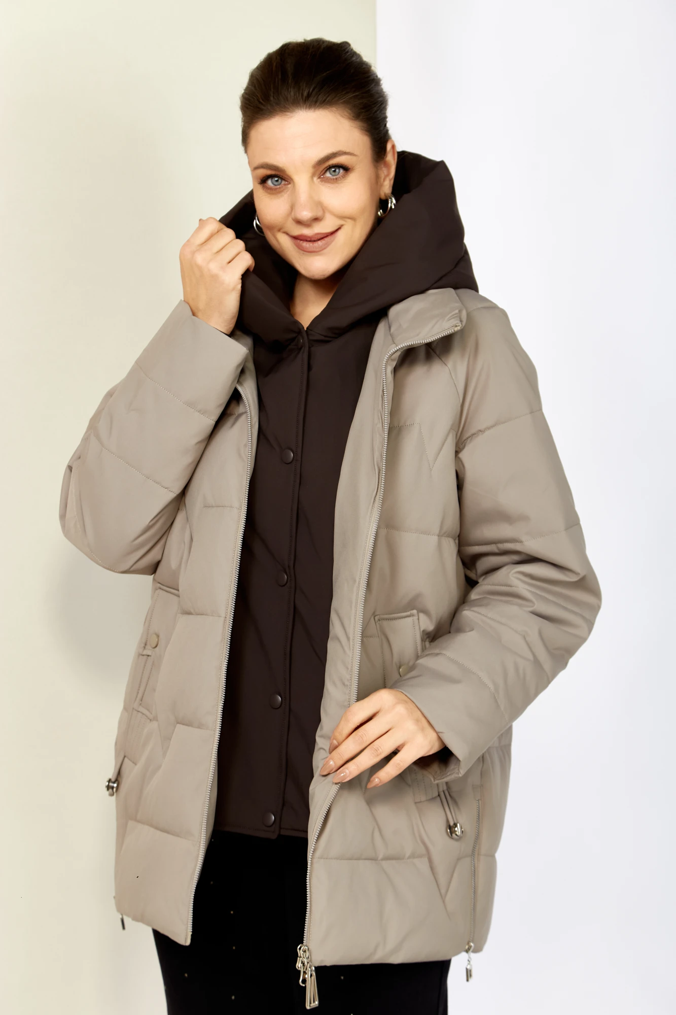 Зимняя стильная женская куртка станет идеальным дополнением гардероба в холодные дни. Выполнена из мягкой, матовой курточной ткани с водоотталкивающим эффектом. На качественной сатиновой подкладке из поливискозы. В качестве утеплителя используется «Холлофайбер» (специально разработан для зимних курток) производство Бельгия с плотностью 200 г/кв.м.. Утеплитель по своим характеристикам легкий и прекрасно держит тепло. По переду прорезные карманы с декоративным элементом на магнитах. Рукав реглан. Застежка двойная, центральная, на тесьму-молнию и под борт на потайные металлические кнопки. Под борт и капюшон отделаны контрастной тканью компаньоном, что придает изделию оригинальный вид.
