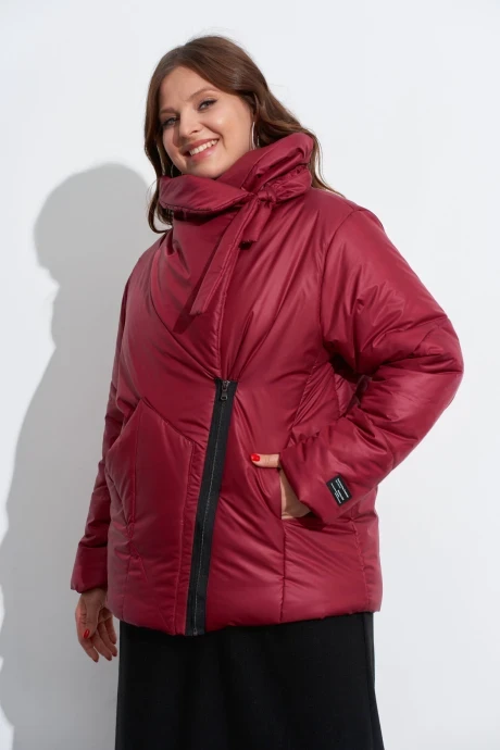 "Куртка на утеплителе с ассиметрично расположенной застёжкой. На деталях переда обработаны: накладной карман справа и карман в рельефе слева. Застёжка из открыто настроченной молнии. Объёмный воротник-стойка подвязывается слева у плеча . Рукава одношовные, с декоративными строчками. Изделие на подкладке.