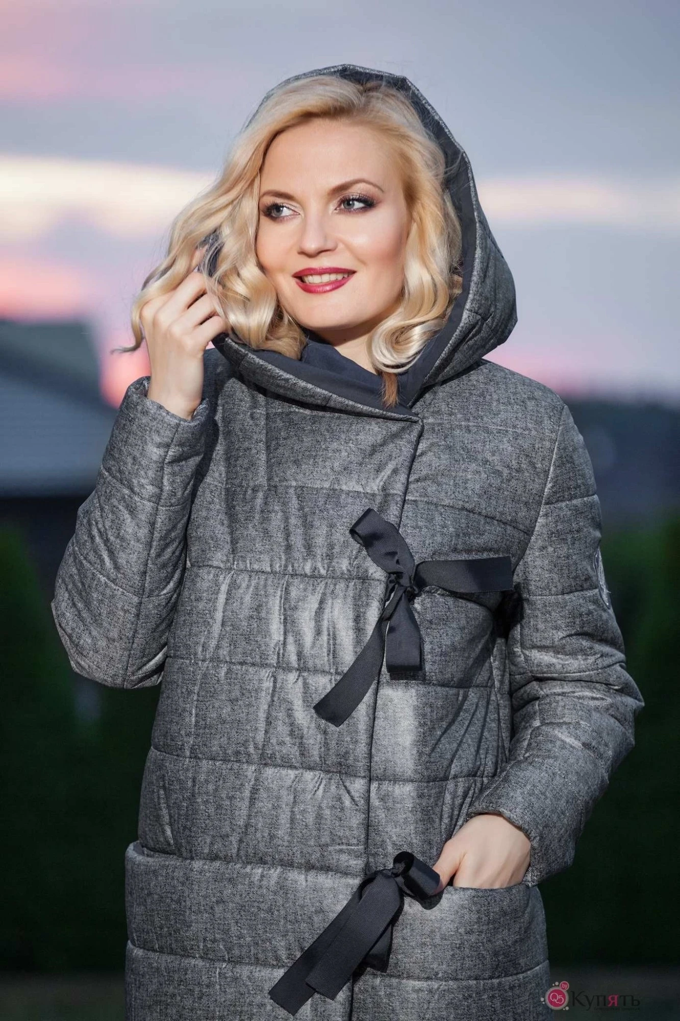 Пальто женское, зимнее на утеплителе «изософт» двухслойное, прямого силуэта, с капюшоном, рукав втачной длинный, по переду два кармана в швах, застегивается спереди на кнопки и завязки, изделие на подкладке.