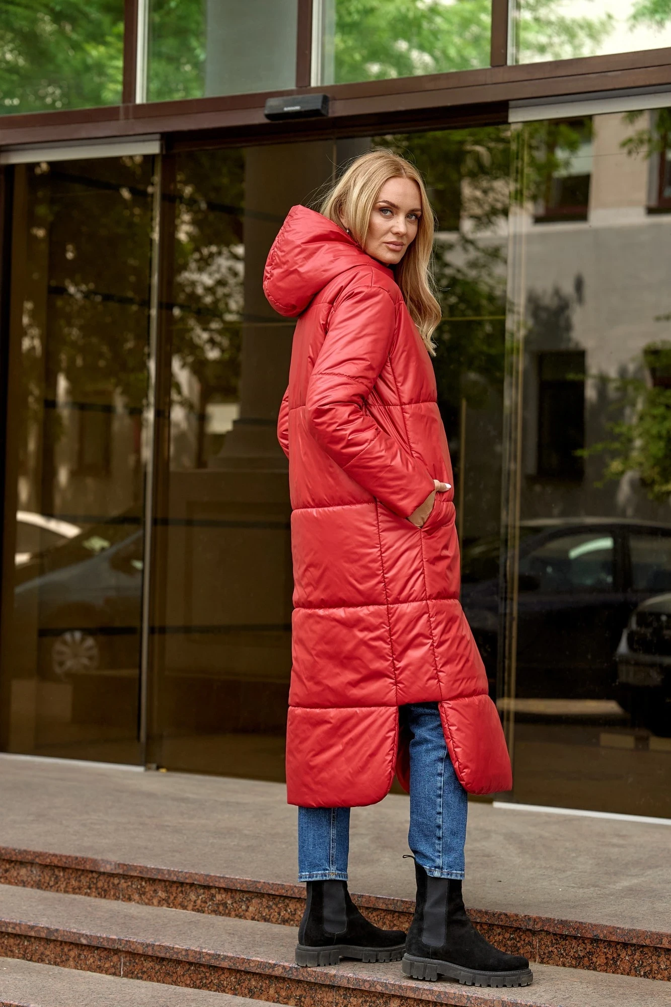 Пальто женское из тонком плащевой ткани на ткани на утеплителе нового поколения isosoft (Пальто 300 г/м2 ,рукав 200 г/м2).Рекомендуем надевать при температуре -10 и до -25 градусов. 2-стороннее, 2-цветное, с втачным рукавом с отложной манжетой по низу рукава, прямого покроя, удлиненное, по переду –карманы горизонтальные в швах, изделие 2-бортное на кнопках с капюшоном.