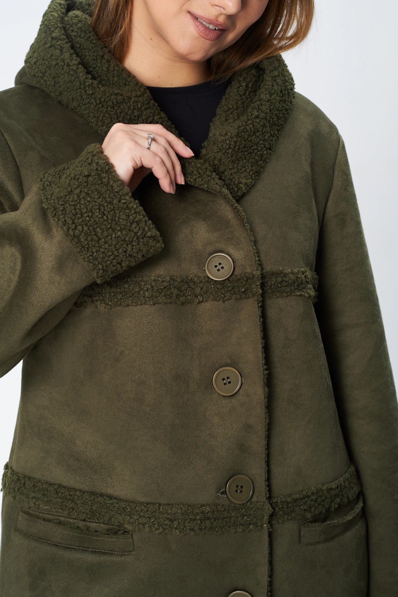 Пальто зимнее, полуприлегающего силуэта с центральной застёжкой на петли-пуговицы,с капюшоном. По полочкам и спинке- горизонтальные рельефы по линии груди и бёдрам. Рукав - втачной одношовный.Материал искусственный дубляж. Температурный режим до -5 градусов.