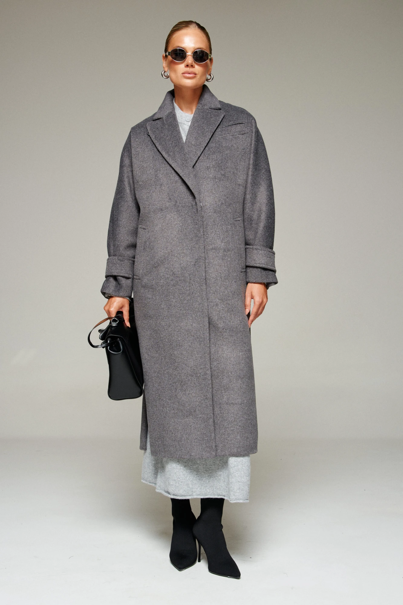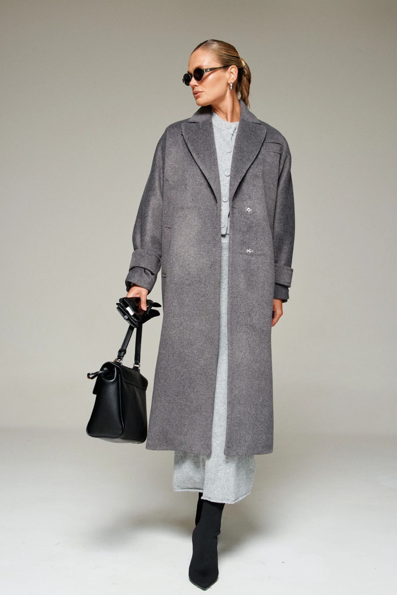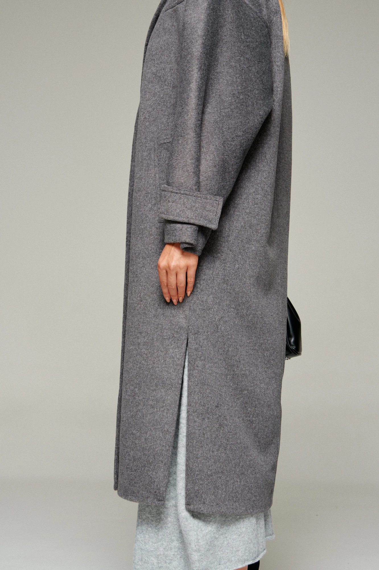 Пальто выполнено из шерстяной ткани, которая обеспечивает теплоизоляцию и защиту от ветра и влаги, подходит для межсезонья и теплой зимы. Двубортное, на подкладке. Изделие рассчитано на температурный режим от +10 до -5 градусов. Модель прямого силуэта актуального покроя «летучая мышь»; предназначена для повседневного использования.
