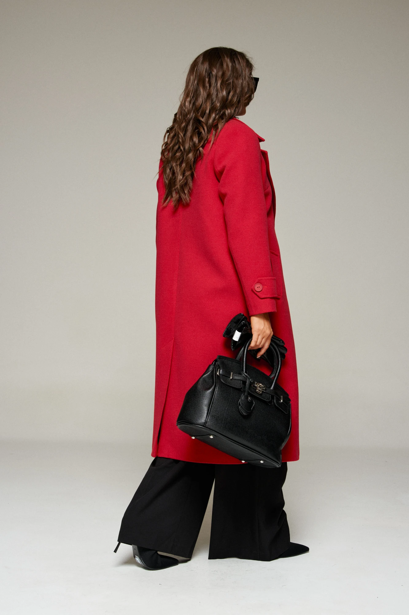 Пальто выполнено из шерстяной ткани, которая обеспечивает теплоизоляцию и защиту от ветра и влаги, подходит для межсезонья и теплой зимы. Двубортное, на подкладке. Изделие рассчитано на температурный режим от +10 до -5 градусов. Модель прямого силуэта, базового кроя; предназначена для повседневного использования.