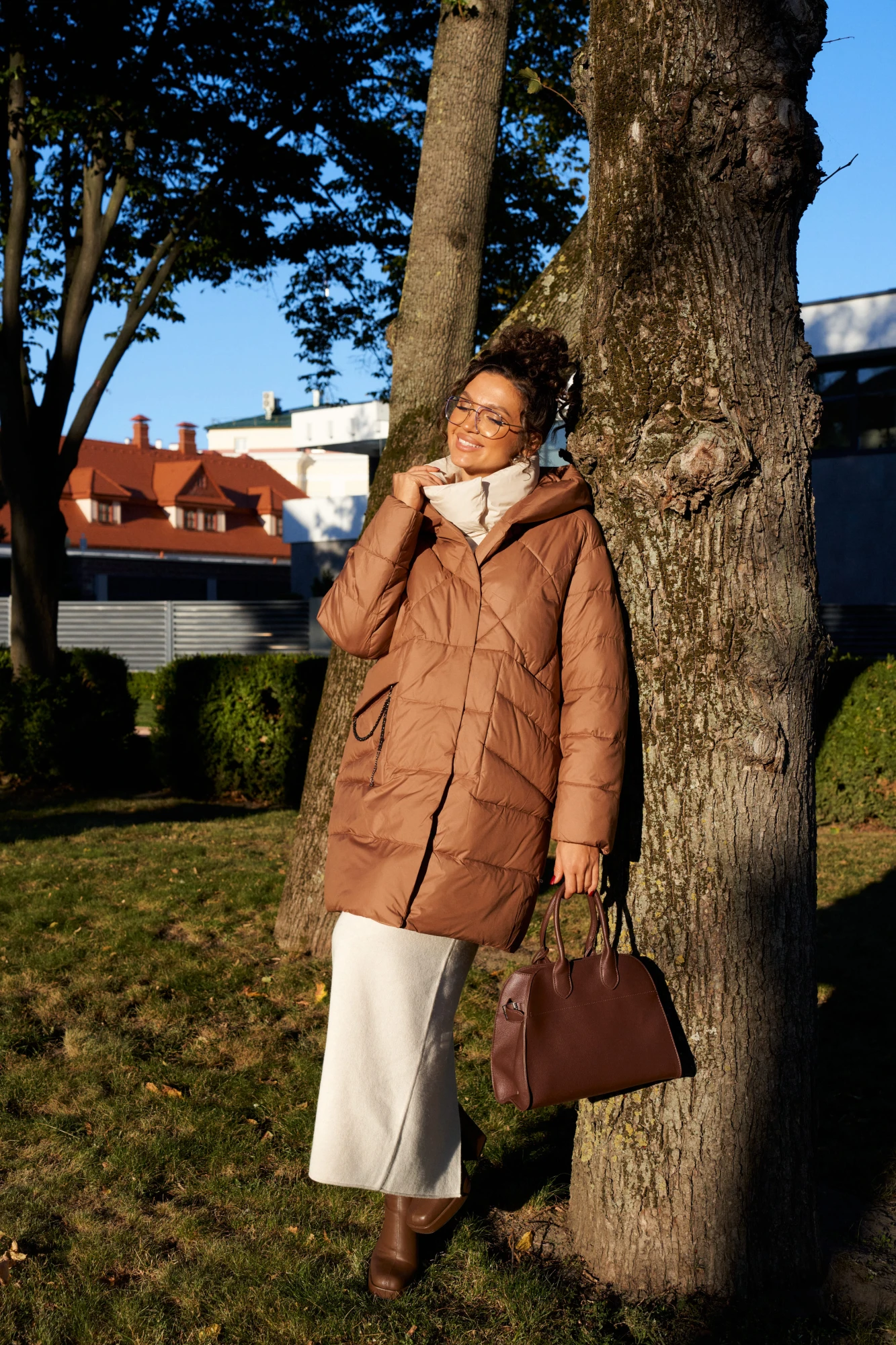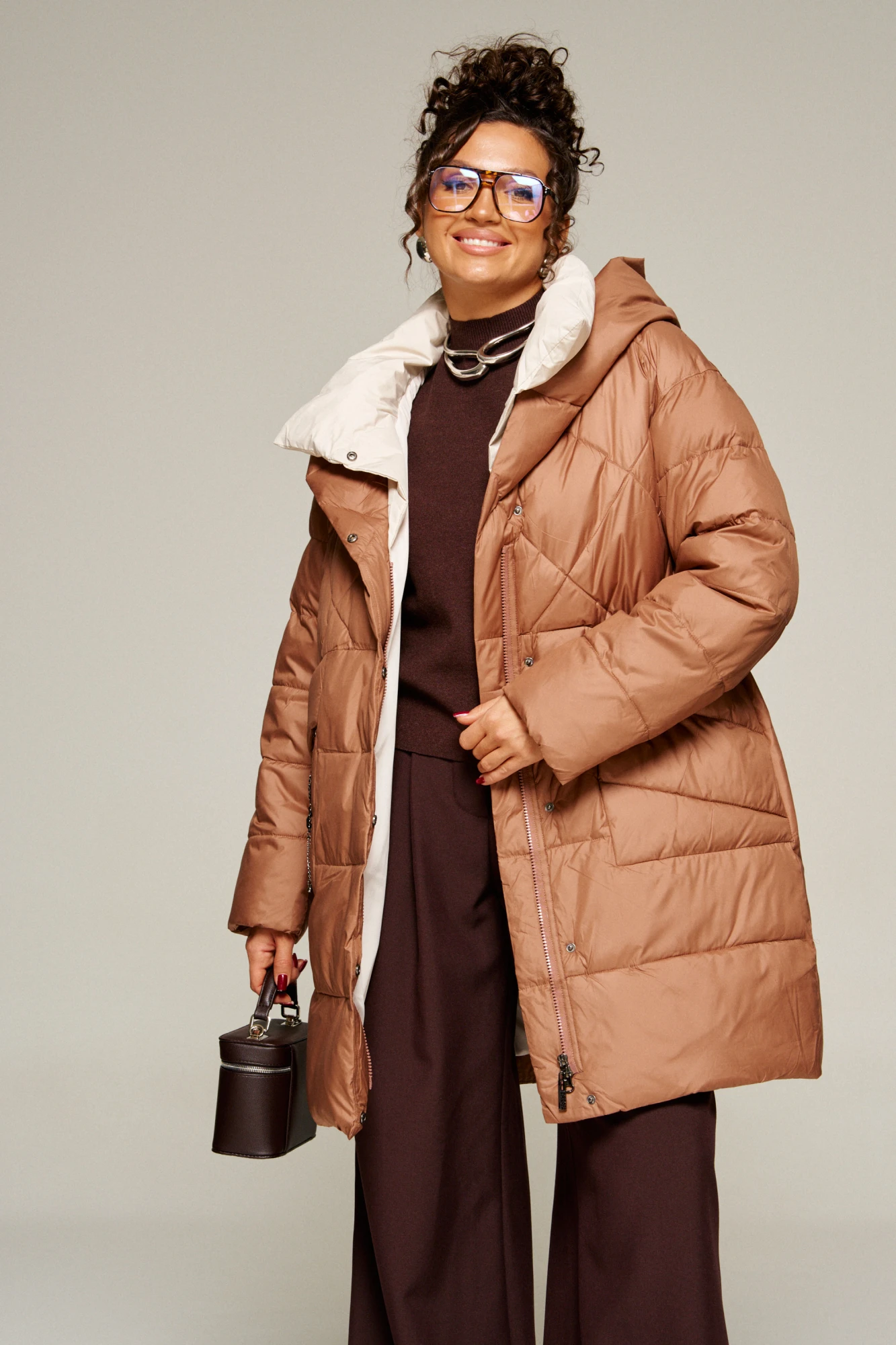 Пальто выполнено из прочной, влагостойкой и приятной на ощупь полиэстерной ткани; на синтетической подкладке. Утеплитель холлофайбер 200 г/м. кв. предназначен для использования изделия при температурном режиме от -10 до -20 градусов.