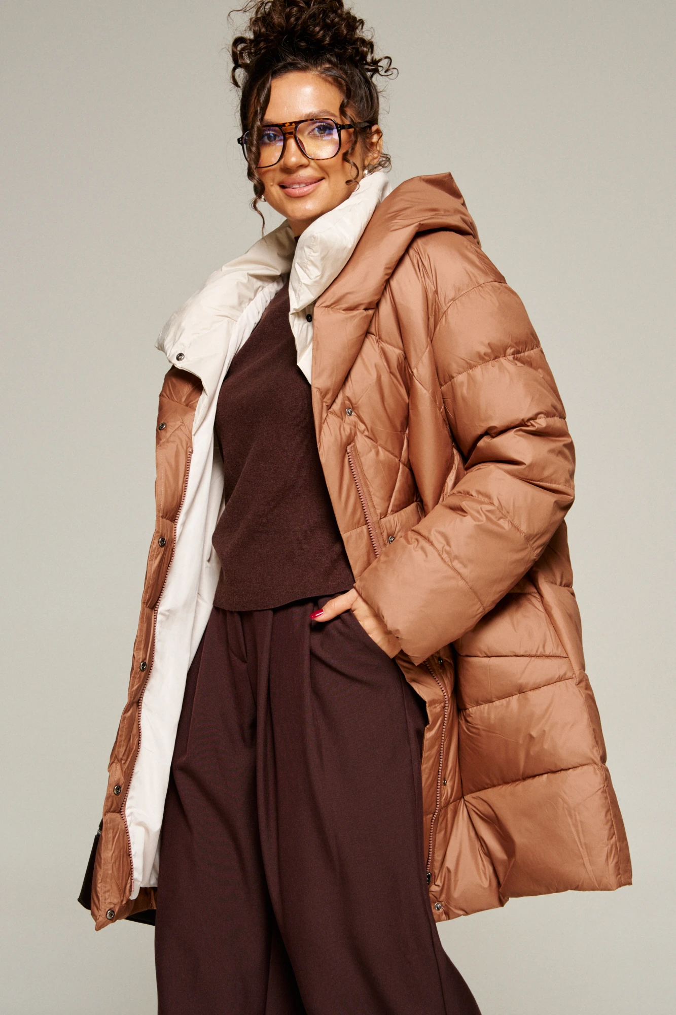 Современный объёмный крой и спущенная линия плеч создают расслабленный актуальный силуэт. А широкий воротник играет роль дизайнерского акцента.
