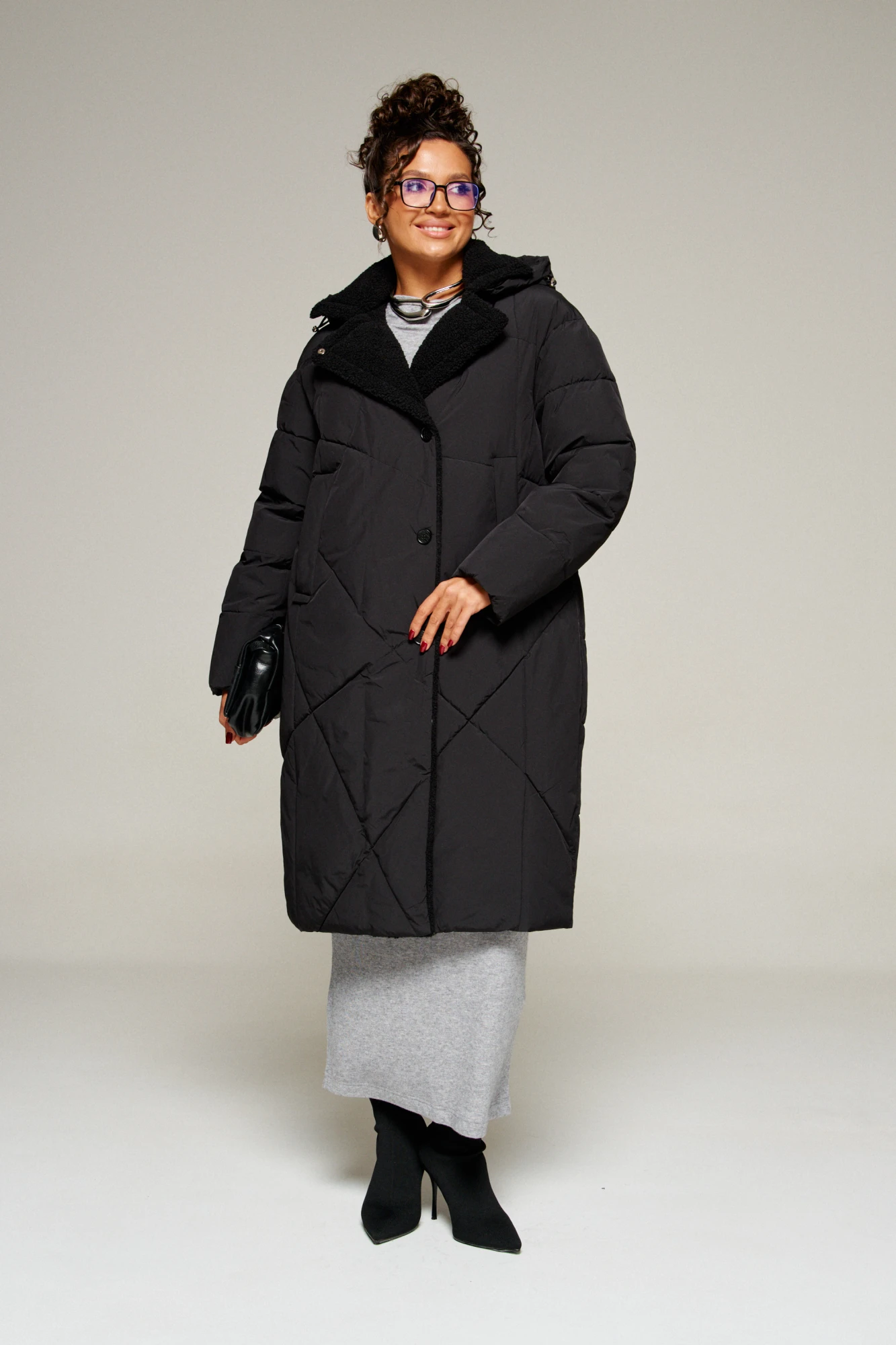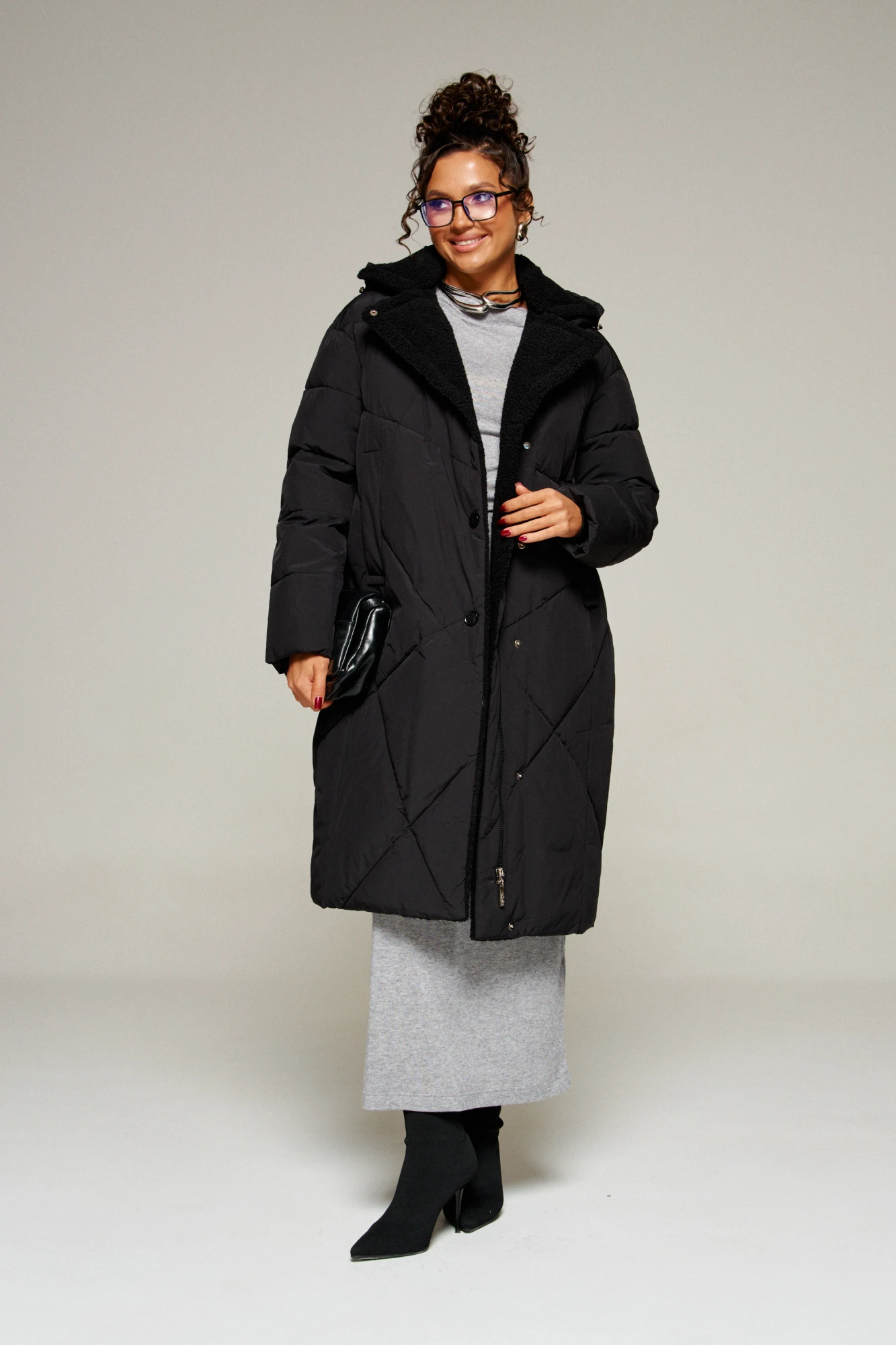 Зимнее, стеганое пальто прямого силуэта для ценителей стиля и практичности. Это отличное сочетание современных материалов и точного кроя.