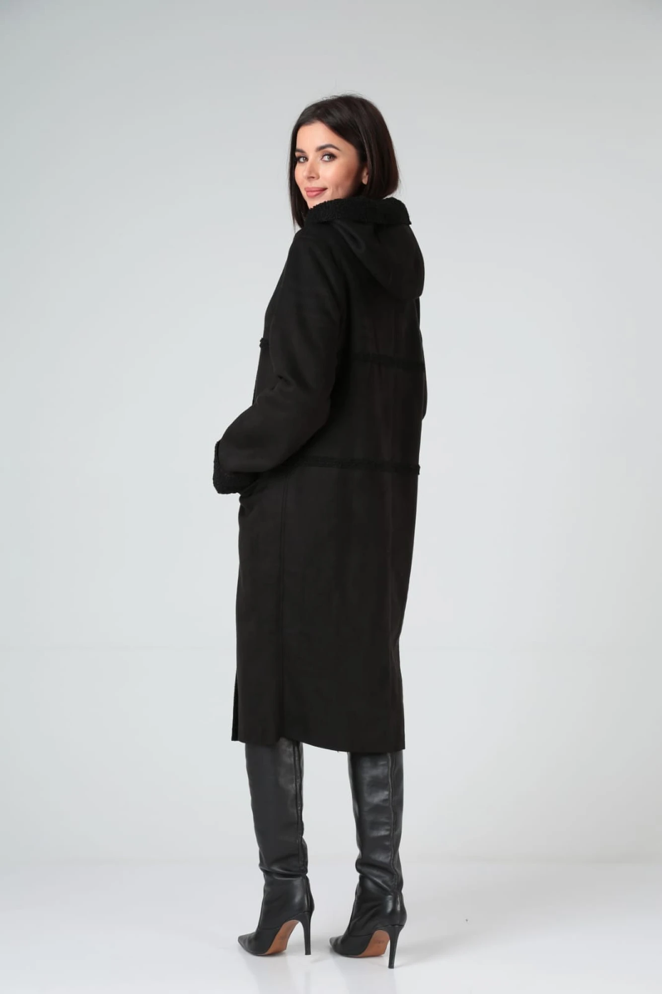 Пальто зимнее, полуприлегающего силуэта с центральной застёжкой на петли-пуговицы,с капюшоном. По полочкам и спинке- горизонтальные рельефы по линии груди и бёдрам. Рукав - втачной одношовный.Материал искусственный дубляж. Температурный режим до -5 градусов.
