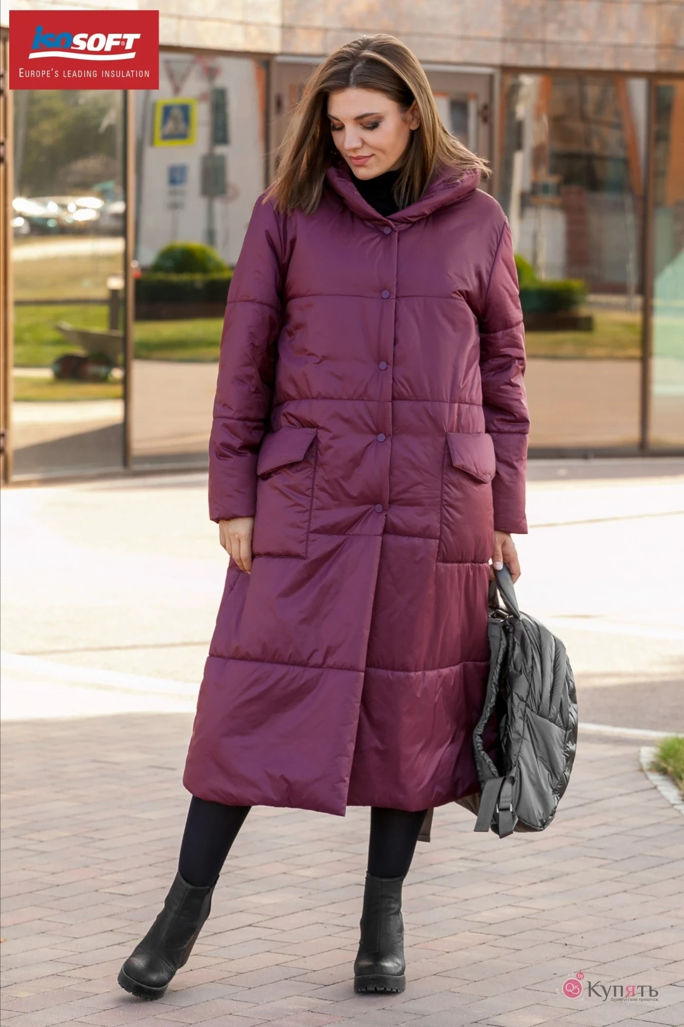 Стеганное пальто с капюшоном и накладными карманами с клапанном, рукав втачной на приспущенной пройме, застежка на кнопке. Изделия из ткани с водоотталкивающим эффектом, на прохладную осень/ теплую зиму. Уникальный бельгийский утеплитель ISOSOFT, который при практически не ощутимом весе и толщине, в два раза теплее обычных синтетических утеплителей (заменяет 4 слоя синтепона), легко восстанавливает форму и не теряет ее после многочисленных стирок. Обладает эффектом термоса (сохраняет тепло тела). Пальто сочетает в себе стиль и модные тенденции.