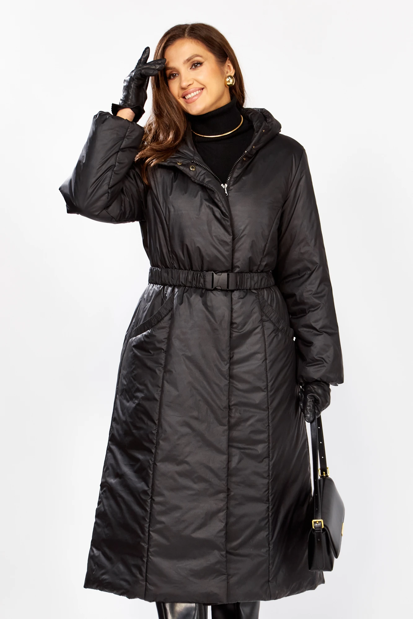 Зимнее стеганое пальто из ткани лакке - союз блеска и практичности. Элегантное, стильное, сочетающее себе комфорт и удобство. А-образный крой мягко формирует линию силуэта, создавая женственный и утончённый образ.