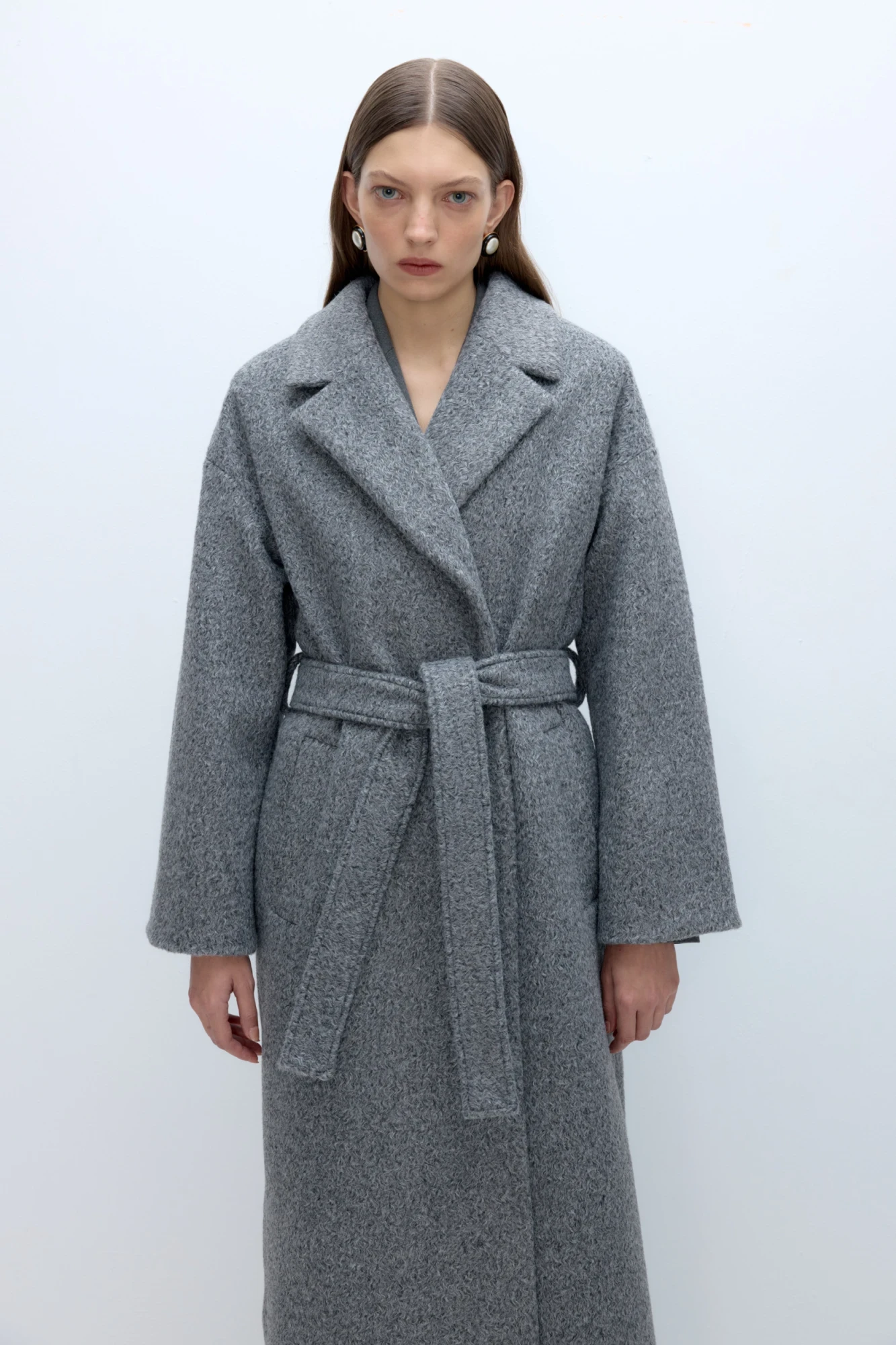 Свободное пальто-халат длины макси.