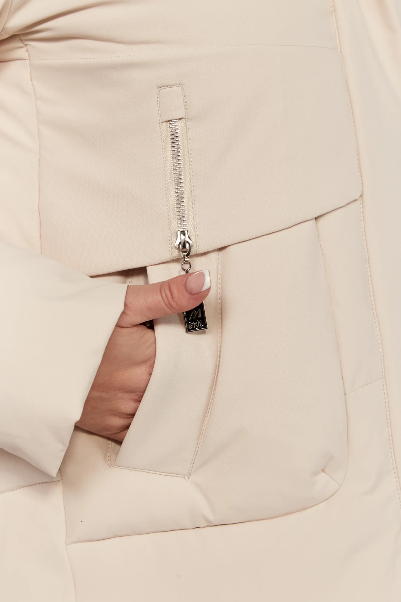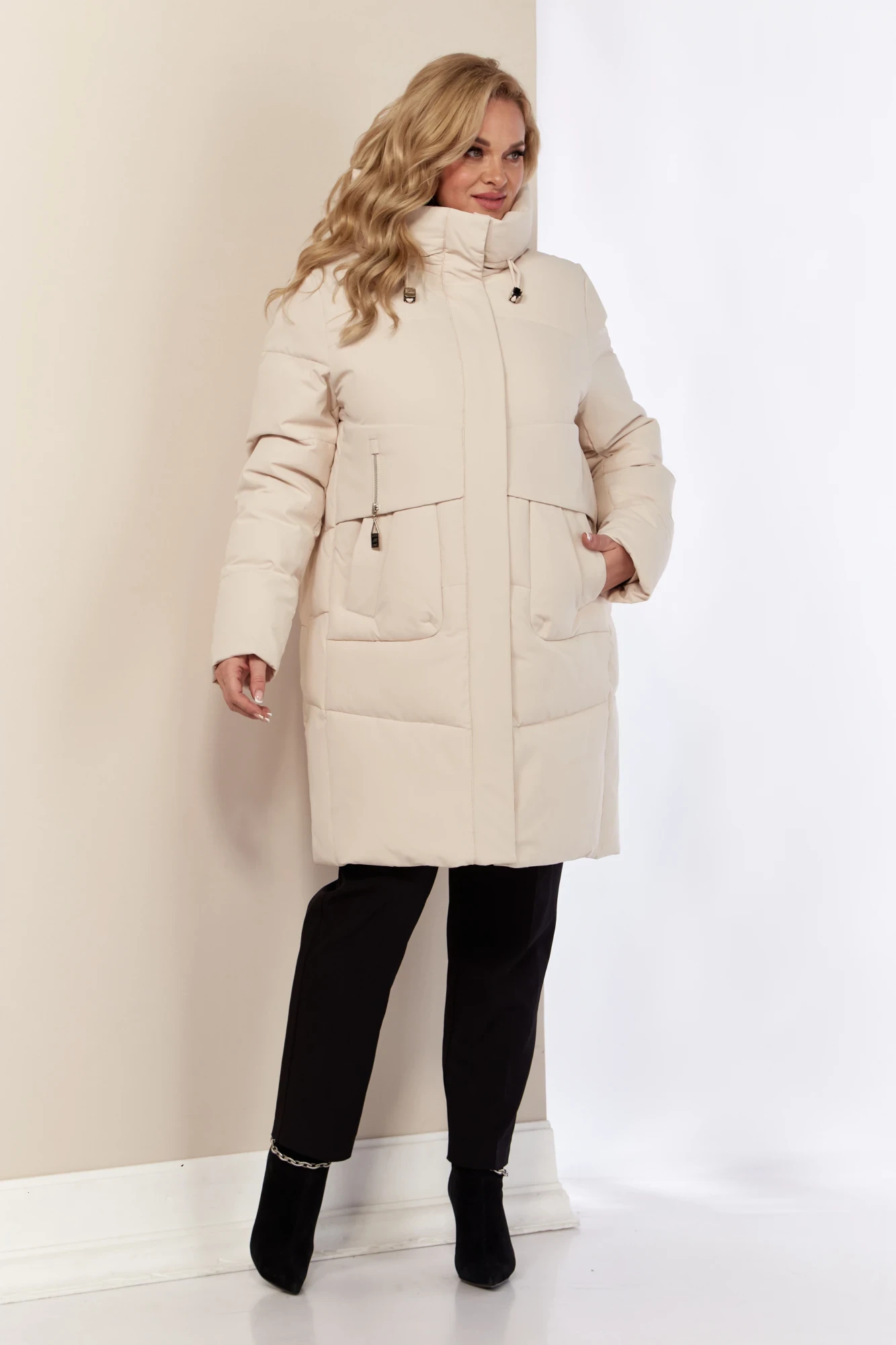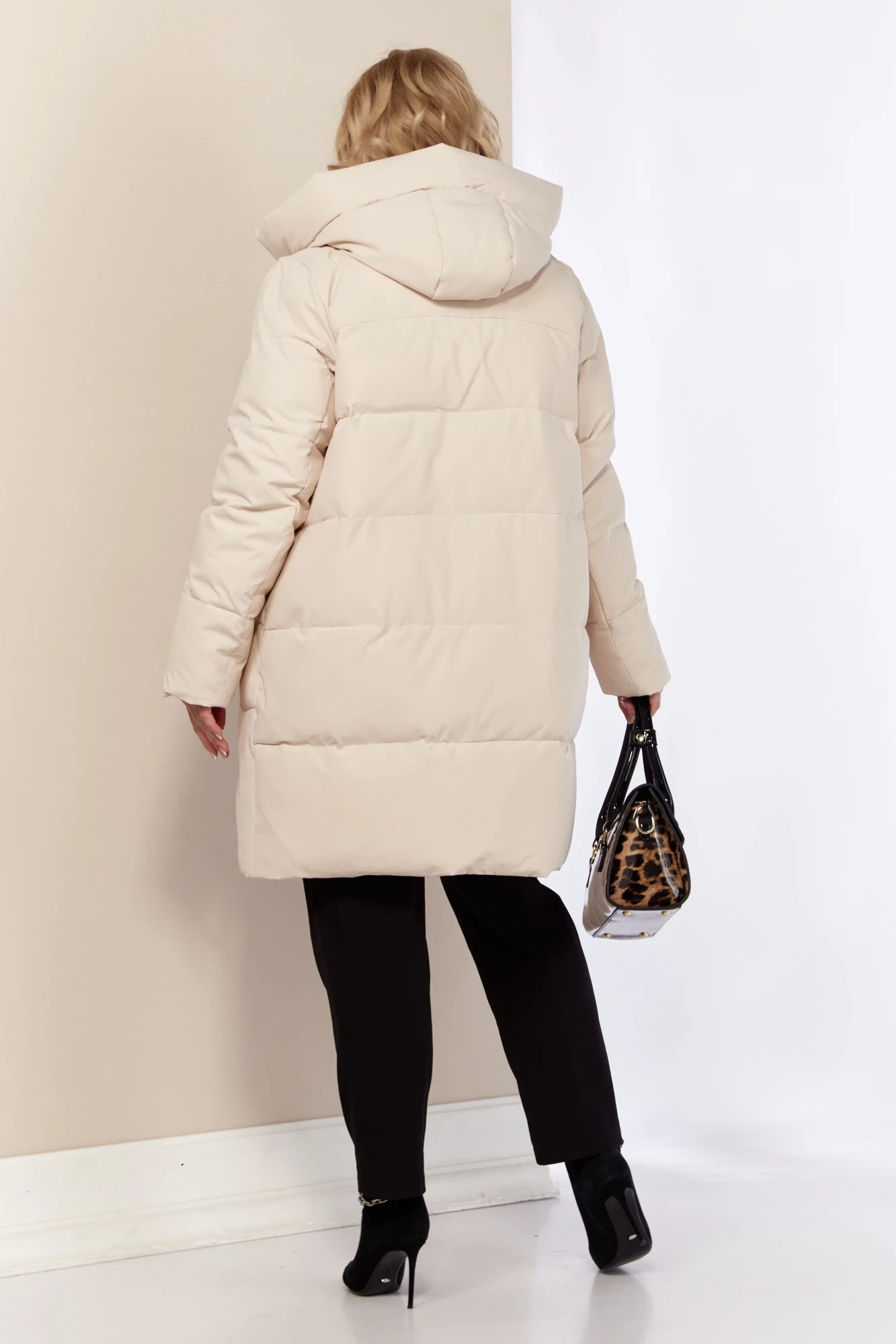 Женский зимний пуховик. Модель прямого свободного кроя в стиле куртка-пальто. Выполнена из качественного и легкого материала, который обеспечивает тепло и уют в самые холодные дни до -25 -30 градусов. Утеплитель «Холлофайбер» обеспечивает защиту от холода, что делает эту куртку идеальным выбором для зимних дней. А объемный теплый капюшон и высокий воротник защитят даже в самую ненастную погоду. Изделие на подкладке. Передняя часть куртки с декоративной подрезной кокеткой и функциональными карманами на кнопках. Застежка центральная с планкой на потайные металлические кнопки и тесьму-молнию. Капюшон не съемный, регулируется декоративным шнуром. Рукав втачной двух шовный. Для защиты от ветра и мороза, рукава по низу дополнены внутренними трикотажными манжетами. С внутренней стороны куртки имеется внутренний карман.