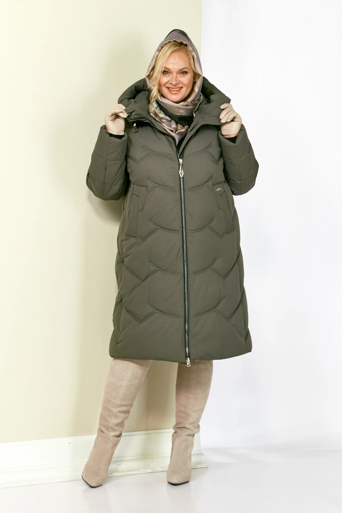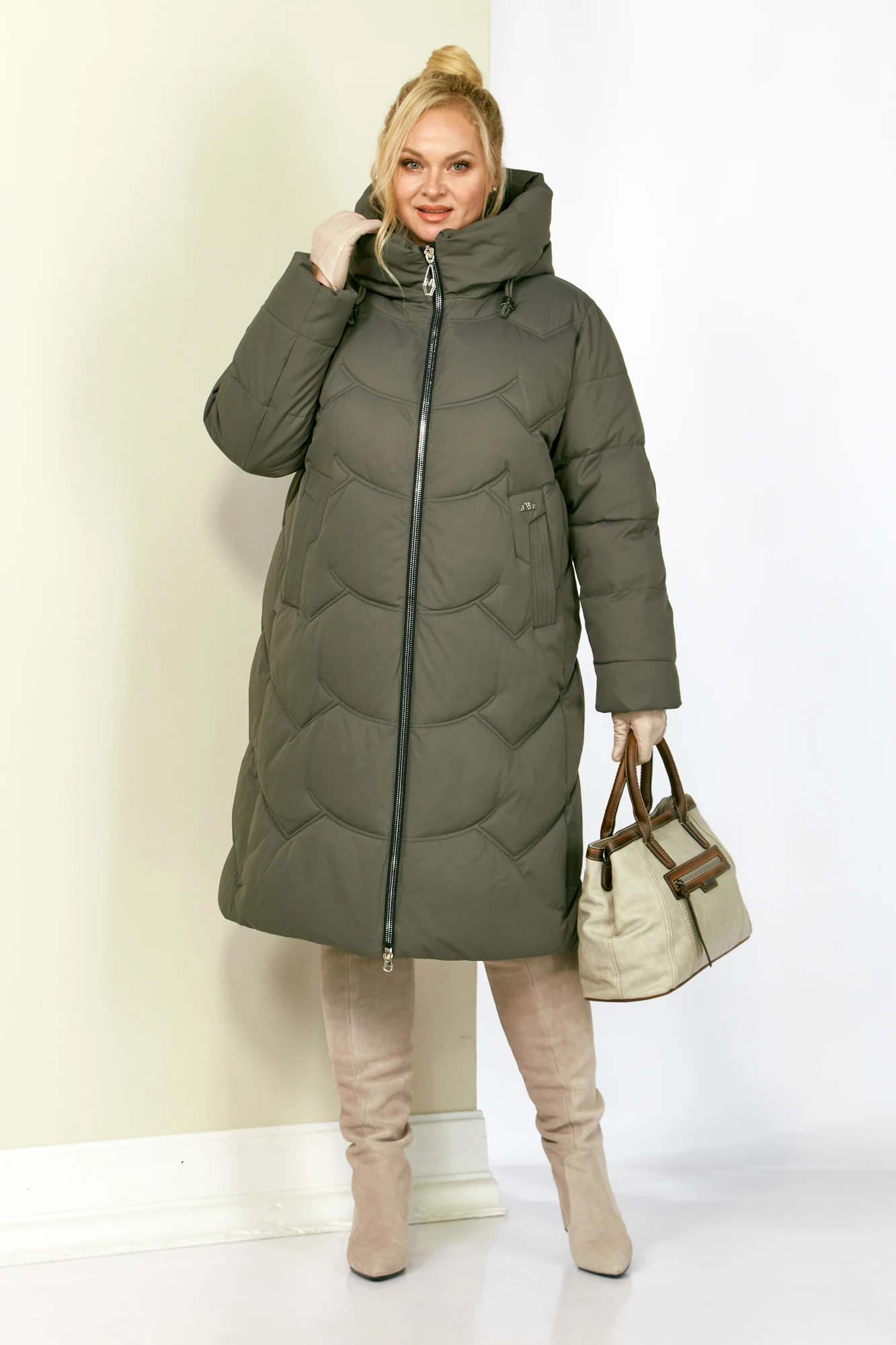 Уютное, зимнее пальто с воротником-стойкой переходящим в капюшон. Пальто удобное в носке, лёгкое и в тоже время очень теплое. Изделие выполнено из курточной матовой ткани высокого качества непромокаемое, на утеплителе «Био пух», который хорошо держит форму и не сбивается. На подкладке.